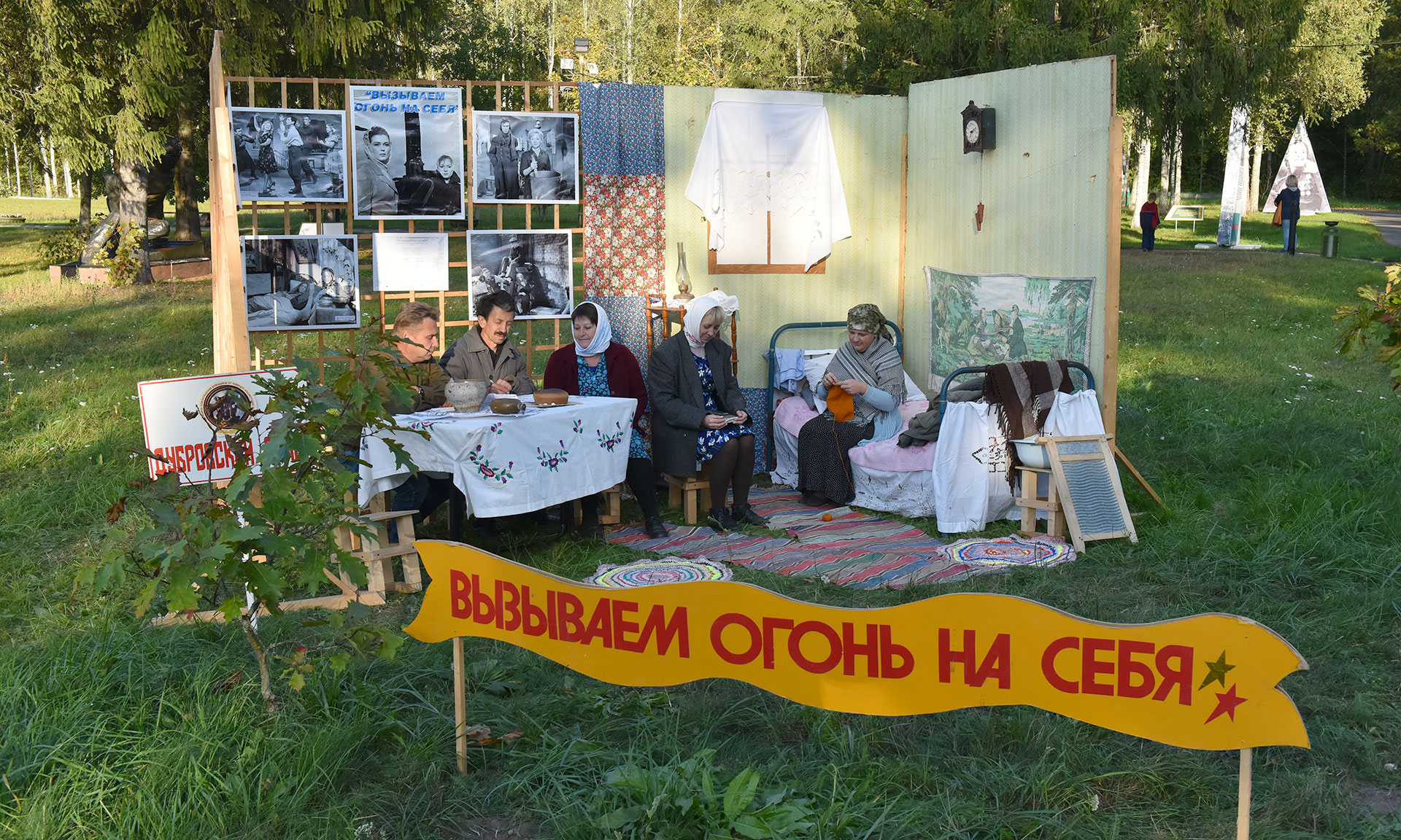 Затем состоялось общее фотографирование. После чего гости и участники встречи прошли «Партизанским тропами Брянщины», окунулись в атмосферу жизни и быта партизан и посетили экспозицию боевой техники.