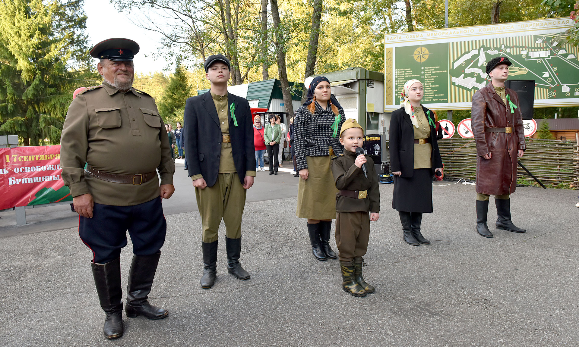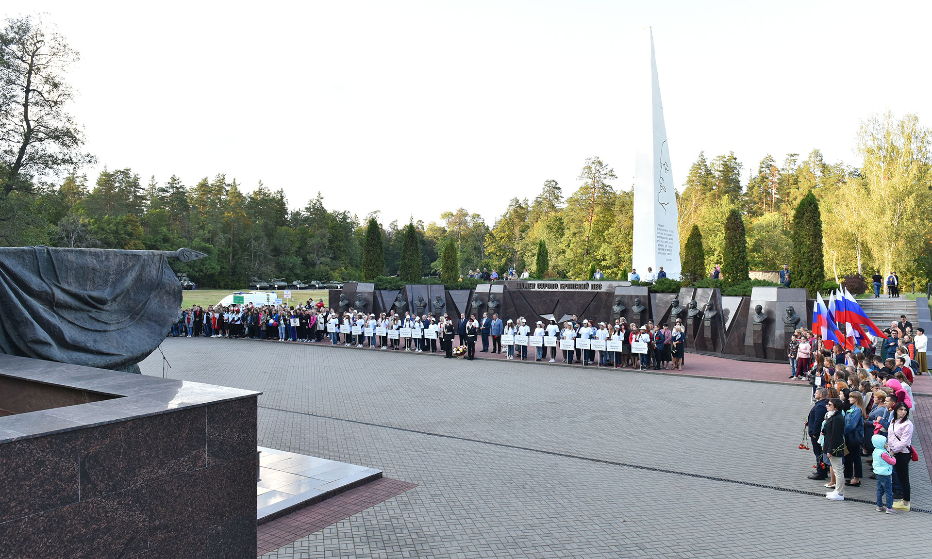 Сегодня здесь на святом месте для каждого жителя Брянщины месте собрались делегации молодёжи, ветераны Великой Отечественной войны, потомки партизан, делегации регионов Центрального федерального округа для участия в патриотической акции, посвященной 50-летию Мемориального комплекса «Партизанская поляна».