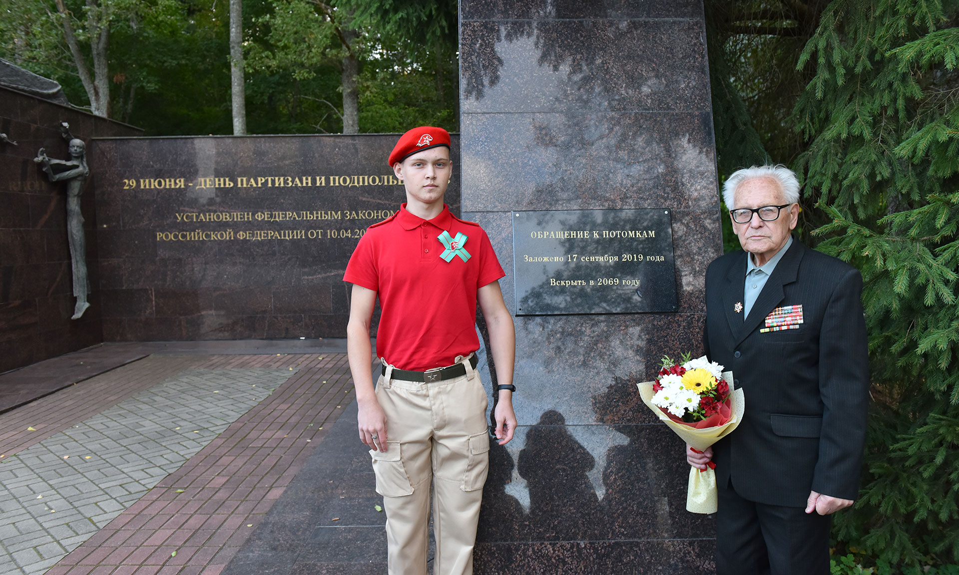 Вскрыть в дни столетнего юбилея Мемориального комплекса «Партизанская поляна» в 2069 году.