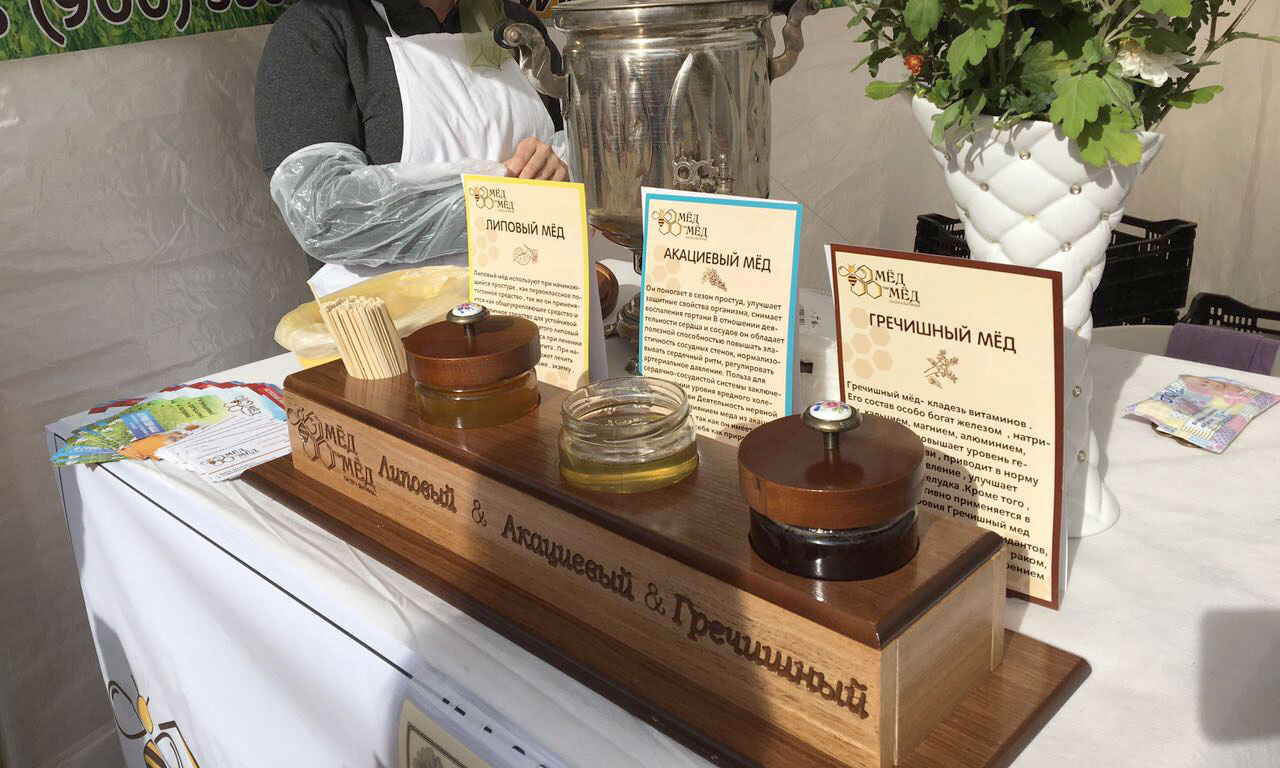 Ассортимент меда был представлен 6 видами: акациевый, цветочный, липовый, гречишный, донниковый, разнотравье.