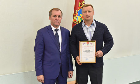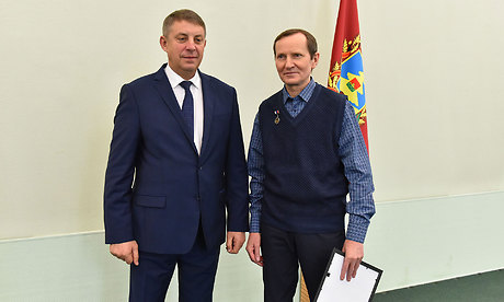 Благодарственным письмом главного федерального инспектора по Брянской области награждены: Александр Левкин — заместитель начальника департамента по производству ОКР и гражданской продукции АО «Брянский машиностроительный завод», Юрий Шпак — помощник главного конструктора специального конструкторского бюро АО «Брянский машиностроительный завод», Людмила Мишина — начальник бюро технического контроля механосборочного цеха отдела технического контроля АО «Брянский машиностроительный завод», Елена Тетёра — начальник лаборатории неразрущающих методов контроля центральной заводской лаборатории АО «ПО «Бежицкая сталь», Игорь Селиханов — электрогазосварщик, занятый на резке и ручной сварке термообрубного цеха АО «ПО «Бежицкая сталь».
