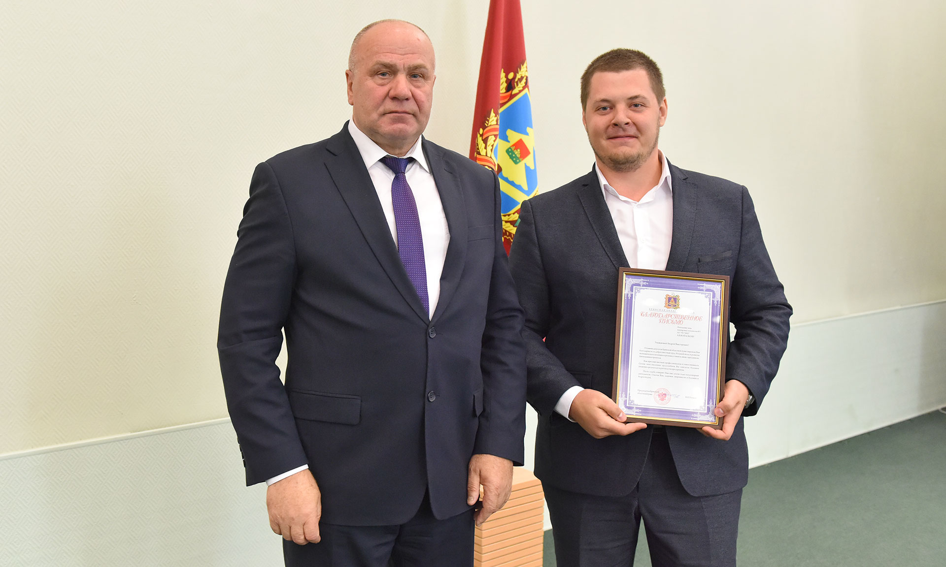 Почетной грамотой Брянской областной Думы награжден Василий Абраменков — столяр столярного участка АО «Монолит». Благодарственным письмом Брянской областной Думы награждены: Ольга Дмитренко — монтажница электронно-измерительной и специальной аппаратуры АО «Монолит», Алексей Кривоносов — токарь АО «Монолит», Андрей Войлоков — начальник цеха маневровых тепловозов № 1 АО «УК «Брянский машиностроительный завод», Григорий Ложба — главный сварщик отдела главного сварщика АО «УК «Брянский машиностроительный завод», Александр Морозов — слесарь-инструментальщик на участке с вредными условиями труда цеха инструментального АО «УК «Брянский машиностроительный завод», Константин Романин — заместитель директора по качеству АО «УК «Брянский машиностроительный завод», Максим Пехов — заместитель начальника цеха по производству цеха магистральных тепловозов № 2 АО «УК «Брянский машиностроительный завод», Виктор Соболев — начальник управления по эксплуатации АО «УК «Брянский машиностроительный завод».