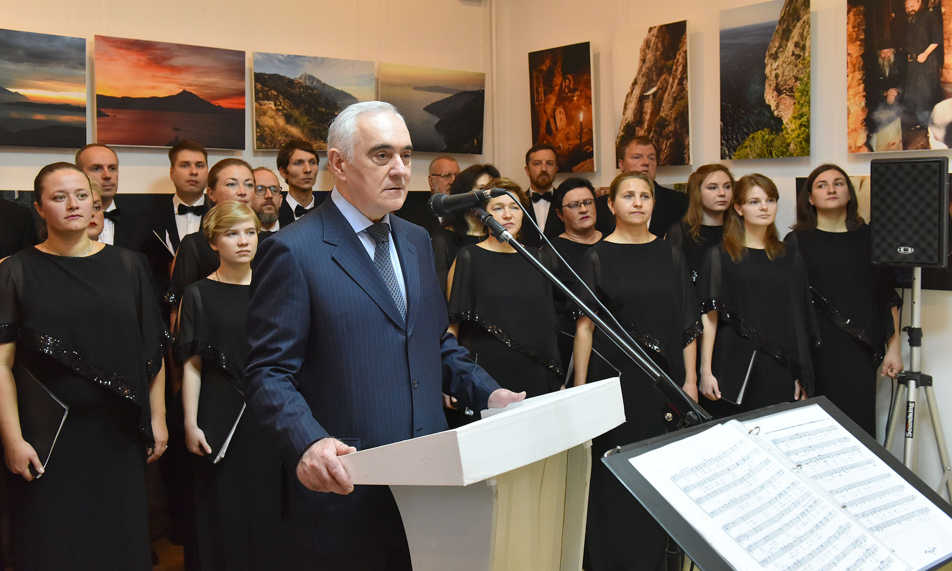— Уважаемые друзья! Сегодня действительно торжество торжеств. Очень приятно, что в нашем Центральном федеральном округе открывается такая великолепная выставка нашей российской истории «Наш Афон». Мы сделали первые шаги по выставочному залу, и с первыми шагами увидели, насколько художник, фотограф, я бы сказал ученый Костас, действительно любит это ремесло. Человек, который живет этой выставкой и нашей историей, сохраняет ее для нас, для нашей России.