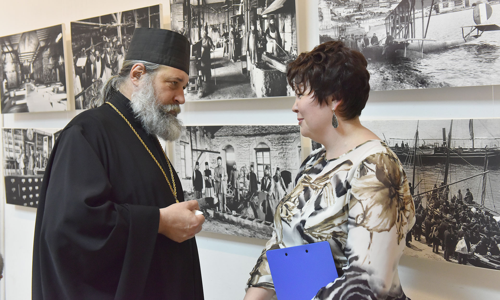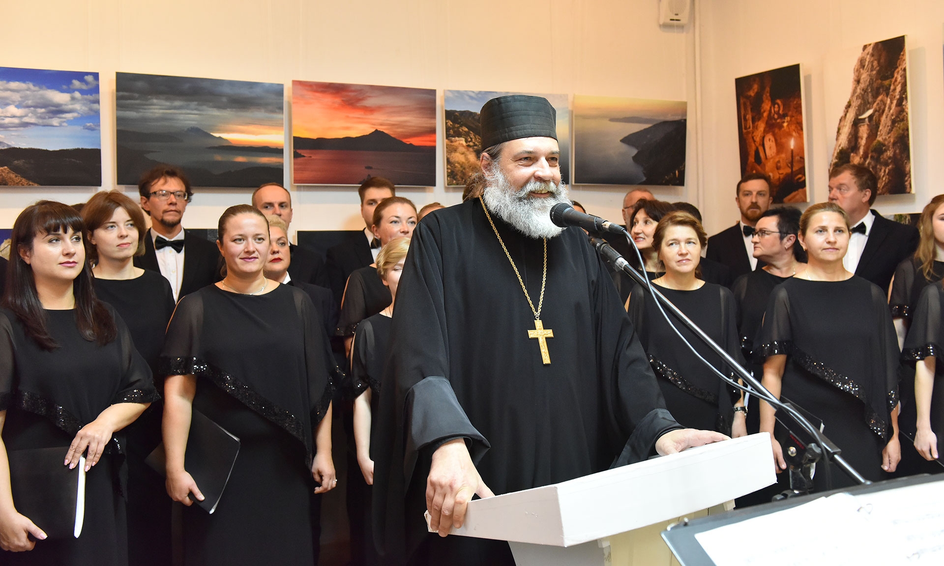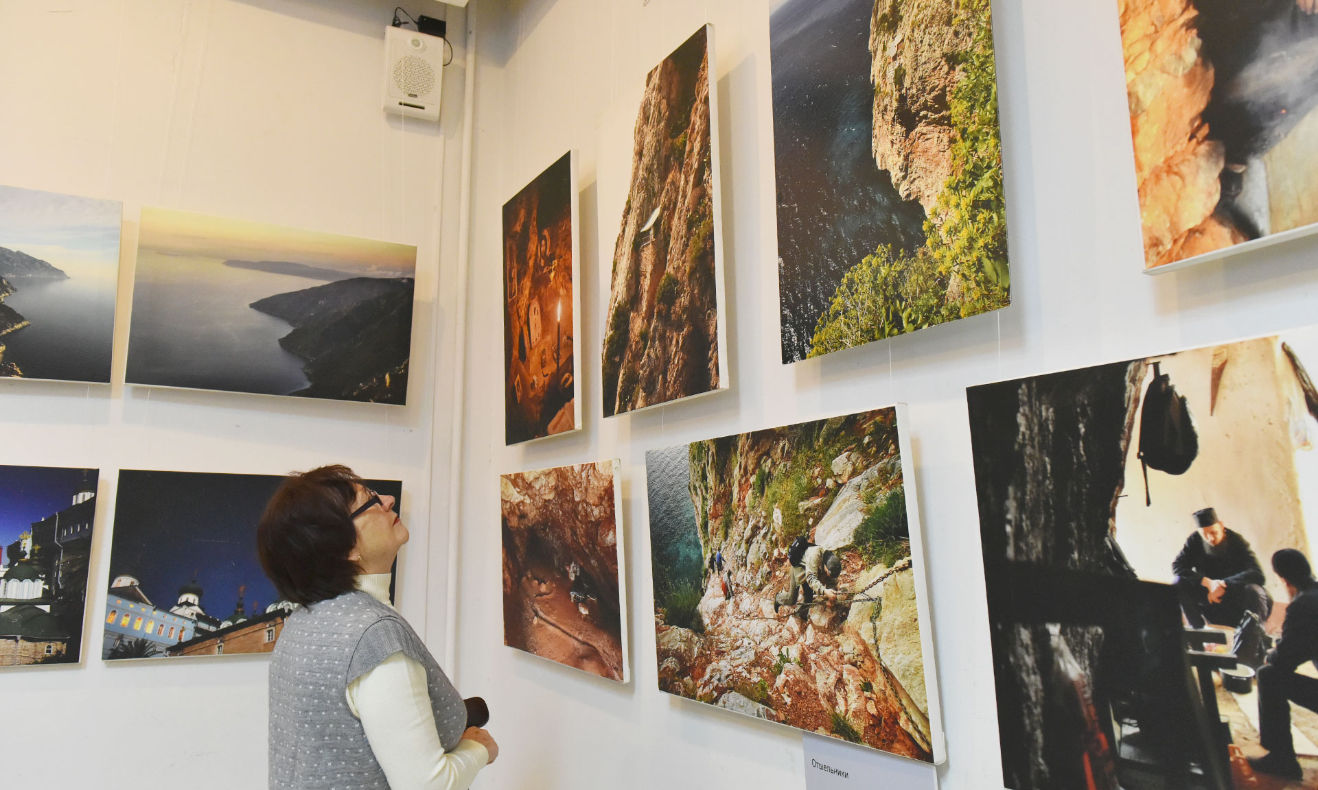 Автор выставки, греческий фотохудожник, представитель русского на Афоне Свято-Пантелеймонова монастыря Костас Асимис поблагодарил всех, кто пришел на выставку, и провел экскурсию по выставочному залу.