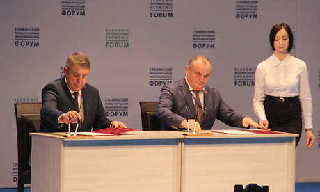 18 октября на полях VIII Славянского международного экономического форума состоялось подписание 15 соглашений на общую сумму более 17 млрд рублей, в рамках проектов предусмотрено создание около 1000 рабочих мест. В церемонии подписания соглашений принял участие Губернатор Брянской области Александр Богомаз.