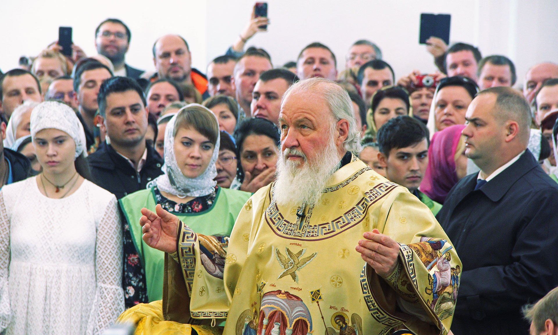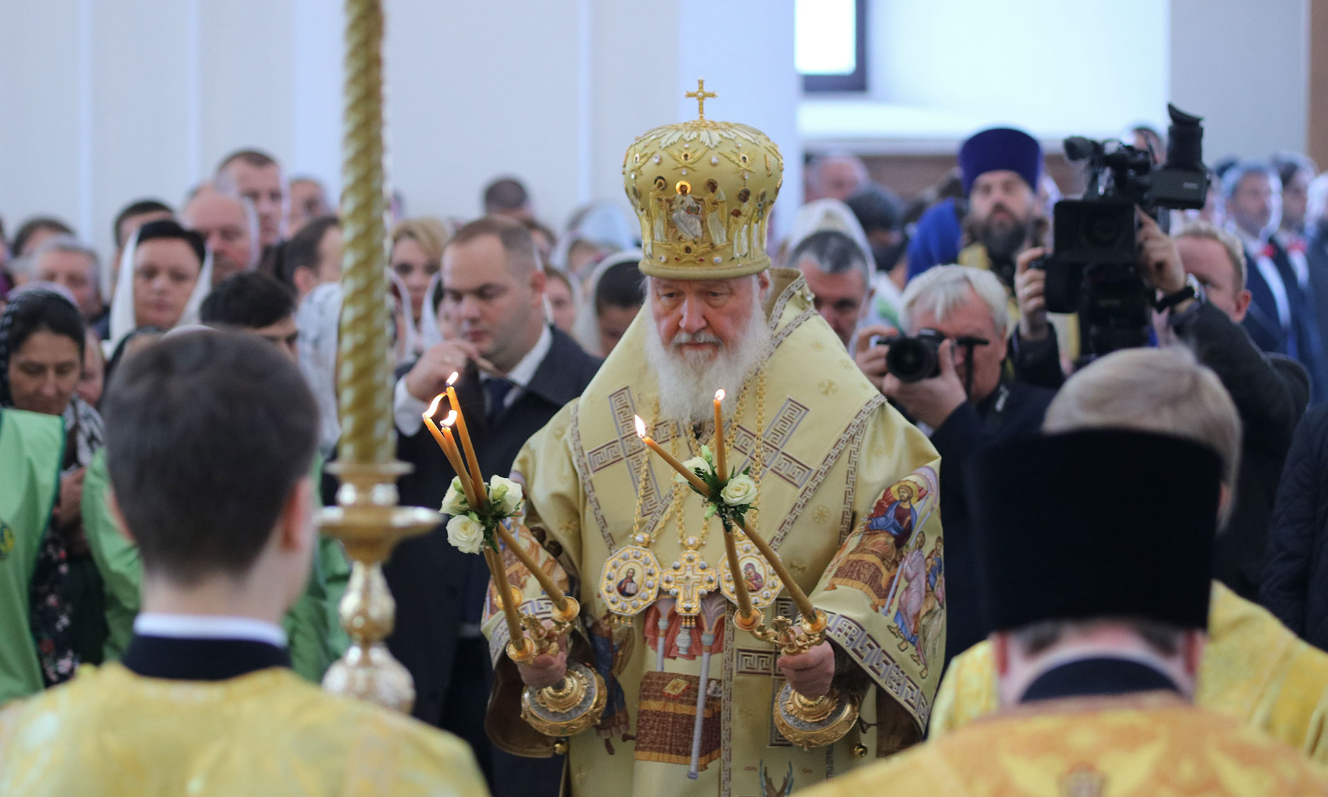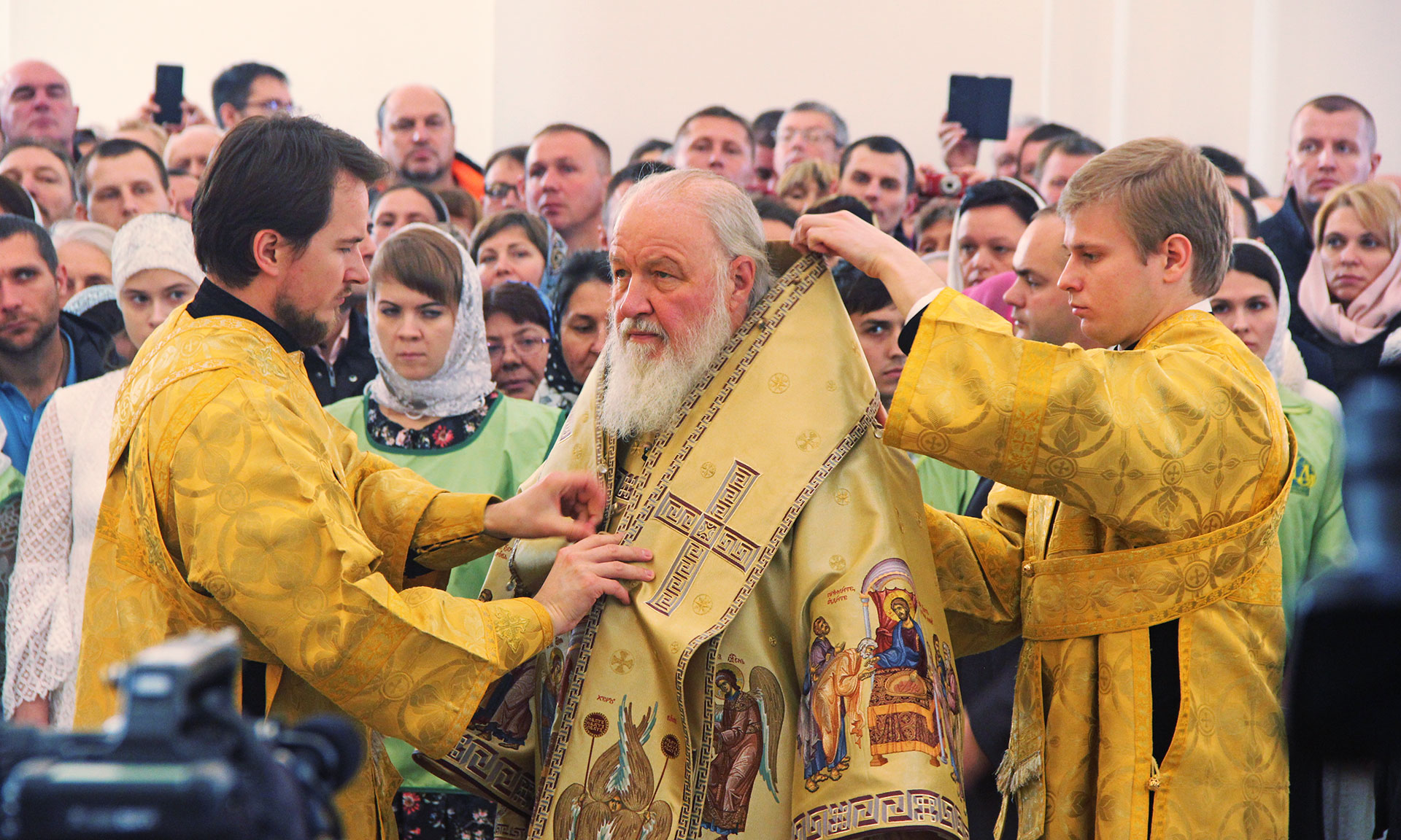 Храмы строятся не на год или два, а на столетия. Сохранилось немало храмов, возраст которых больше тысячи лет, — если говорить о православном мире в целом. В нашей стране, к сожалению, не все исторические святыни сохранились, уж слишком часто она подвергалась нашествию иноплеменников. Сегодня, когда я летел на вертолете из Москвы в Брянск и видел эти бескрайние брянские леса, я, конечно, не мог не вспомнить великий героизм нашего народа во время Великой Отечественной войны, когда именно здесь, в лесах Брянщины, которые стали неприступной крепостью для враждебной армии, победившей большую часть Европы, люди отдавали свою жизнь, чтобы враг не прошел дальше. Подвиги на Брянской земле, в первую очередь героическая партизанская война, стали огромным вкладом в победу нашего народа. И, взирая с высоты птичьего полета на эти бескрайние леса, невозможно было об этом не вспомнить.