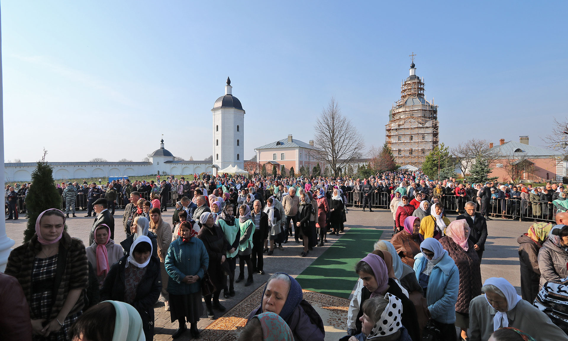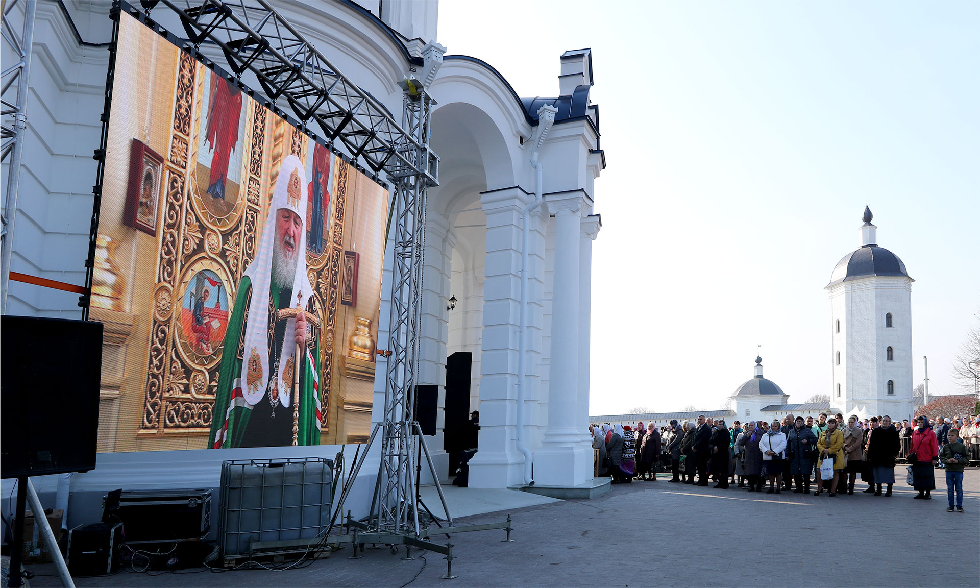 На телеканале «Союз» шла прямая трансляция Патриаршего богослужения. Часть верующих следила за трансляцией на больших экранах, установленных на территории храма.