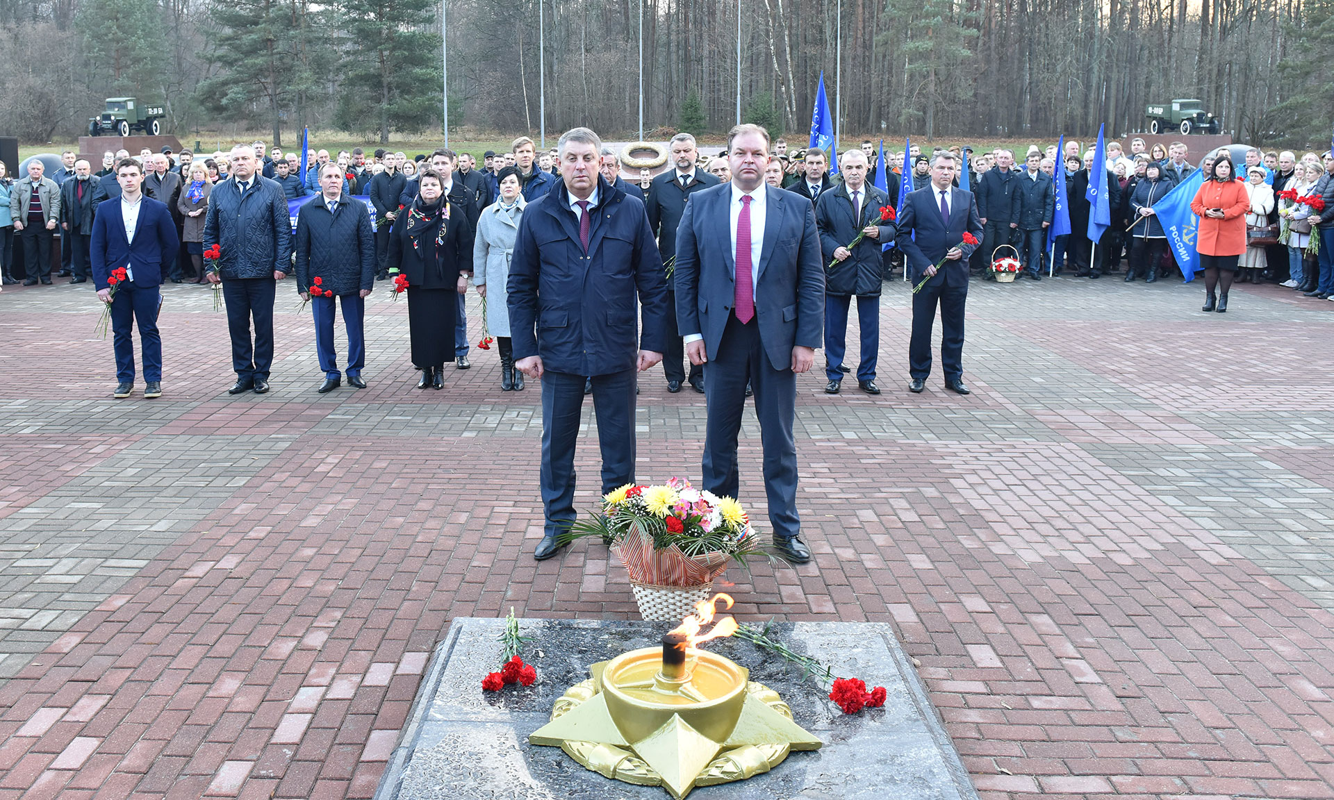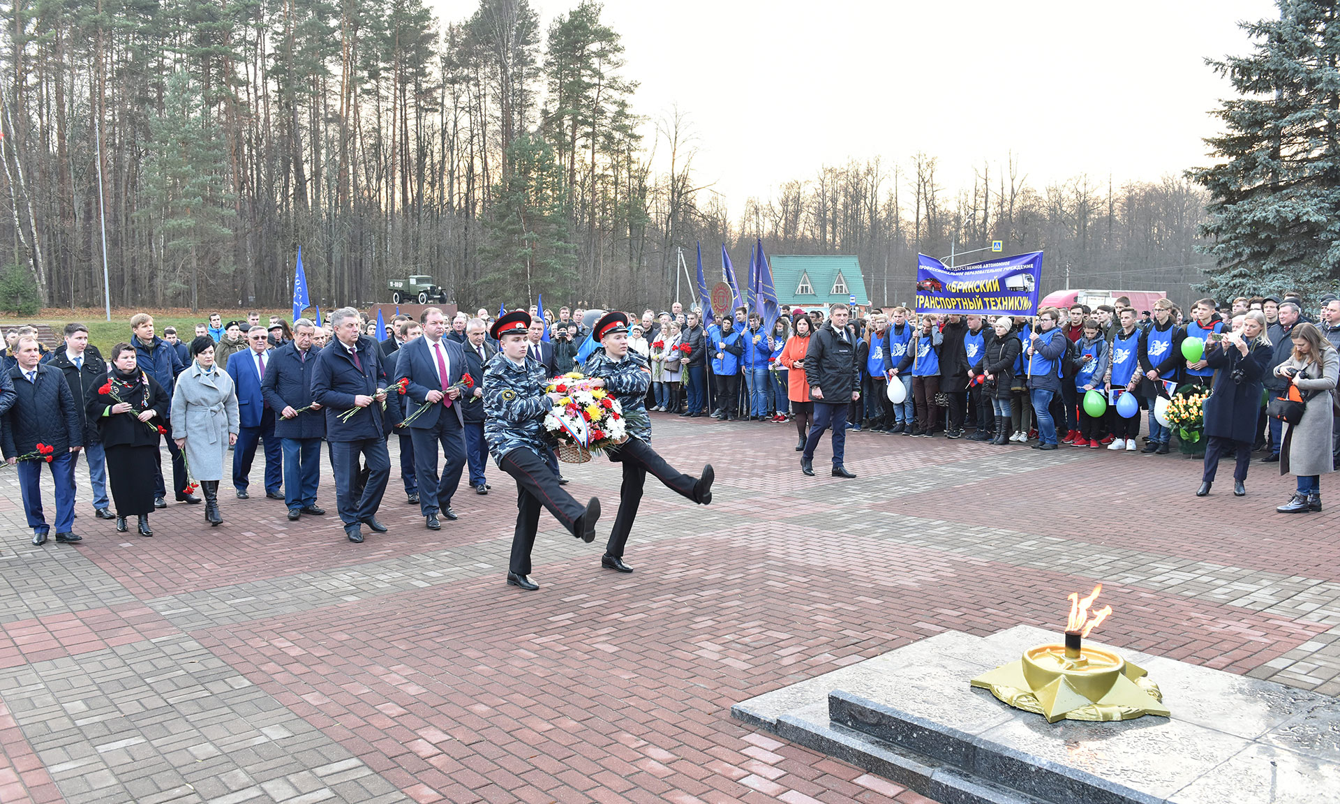 В знак памяти о подвиге воинов-водителей цветы к вечному огню возложили заместитель Министра транспорта Российской Федерации Алексей Семенов, Губернатор Брянской области Александр Богомаз, председатель Брянской областной Думы Владимир Попков, главный федеральный инспектор по Брянской области Андрей Дьячук, депутаты Государственной Думы Федерального Собрания Российской Федерации Валентина Миронова и Валентин Суббот, глава города Брянска Марина Дбар, глава Брянской городской администрации Александр Макаров, представитель молодого поколения будущих работников автотранспорта, студент Брянского транспортного техникума Никита Батурин.