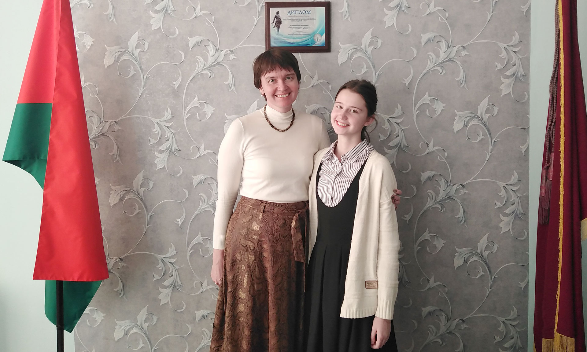 Немалая заслуга в успехах Валерии принадлежит учителю английского языка Екатерине Станиславовне Медведевой, которая не только поддерживает учащихся в их стремлении участвовать в различных олимпиадах и конкурсах, но и вдохновляет личным примером. В конце октября Екатерина Станиславовна стала абсолютным победителем Международной профессиональной олимпиады учителей «ПРОФИ-2019», которая проводится по инициативе НИУ «Высшая школа экономики». Заключительный очный тур олимпиады проходил в Москве и на одиннадцати площадках от Калининграда до Якутска в Российской Федерации и Улан-Батора в Монголии. По результатам международного рейтинга Екатерина Станиславовна стала первой из 1822 учителей английского языка и была награждена дипломом I степени и медалью «Лучшему учителю английского языка России и стран СНГ».