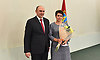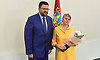 Мы и дальше продолжим реализацию всех программ, направленных на поддержку материнства и детства, а сейчас позвольте перейти к самому торжественному и трогательному моменту нашего праздника — традиционному вручению Почетного знака «Материнская слава». Это дань глубокого уважения и признательности женщинам, которые воспитывают пять и более детей. Столь высокой награды уже удостоены 664 многодетные матери. Сегодня ее получат еще 22 женщины.