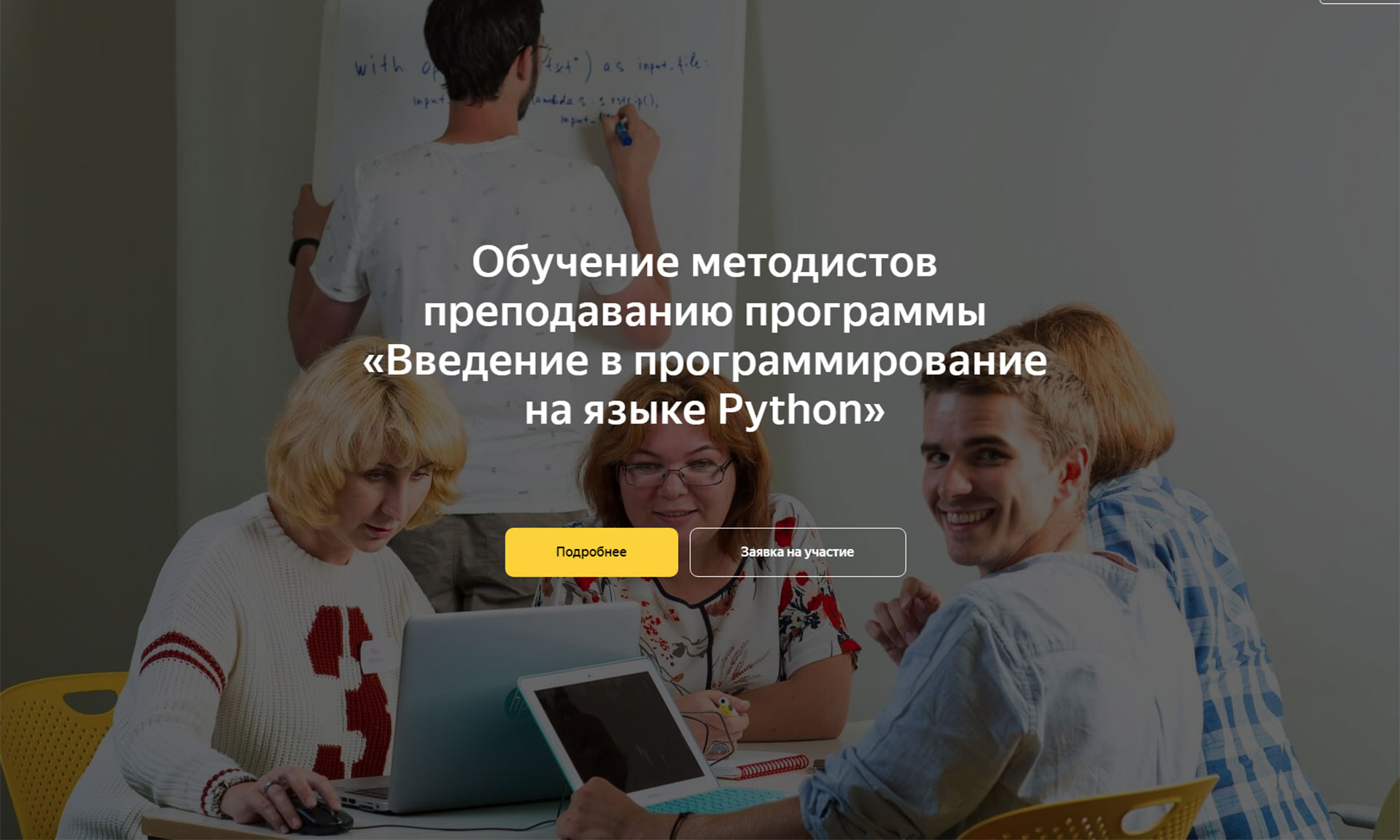 В конце января в Москве состоится пилотный семинар, на котором компания «Яндекс» будет проводить обучение региональных методистов преподаванию программы «Введение в программирование на языке Python». Программа рассчитана на методистов центров профессионального мастерства, институтов повышения квалификации, институтов развития образования и др. Организации, чьи представители успешно пройдут отбор и очное обучение в Москве, смогут преподавать данный курс учителям информатики региона.