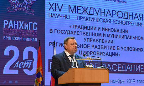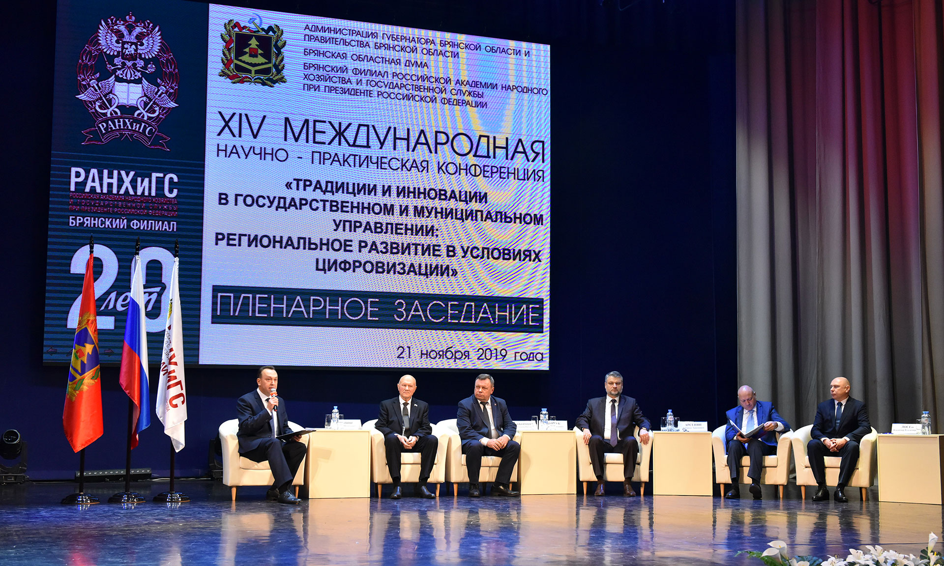 21 ноября в Брянске состоялось пленарное заседание XIV Международной научно-практической конференции «Традиции и инновации в государственном и муниципальном управлении: региональное развитие в условиях цифровизации», посвященной 20-летию со дня образования Брянского филиала Российской академии народного хозяйства и государственной службы при Президенте Российской Федерации.