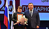 Благодарность ректора Российской академии народного хозяйства и государственной службы при Президенте Российской Федерации за сотрудничество с Брянским филиалом РАНХиГС и содействие в подготовке государственных, муниципальных служащих, специалистов народного хозяйства Брянской области и нагрудный знак Президентской академии вручена главному федеральному инспектору по Брянской области Андрею Дьячуку.