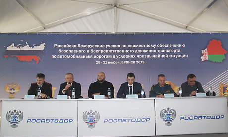 20—21 ноября в Брянской области состоялись совместные российско-белорусские учения. Мероприятие, на которое собрались дорожники со всей России, было посвящено совместному обеспечению безопасного и беспрепятственного движения транспорта по автомобильным дорогам в условиях чрезвычайной ситуации. Брянская область выбрана для учений не случайно — многие автомобильные дороги общего пользования федерального значения европейской части России имеют продолжение и в Республике Беларусь.