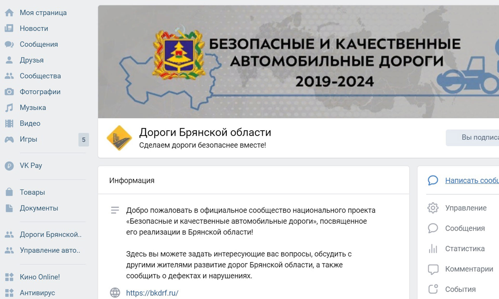 Благодаря нацпроекту местные жители становятся полноправными участниками процесса развития дорожной инфраструктуры, ведь главная цель всех изменений, заложенных в показателях нацпроекта, — улучшение качества жизни населения. В частности, пользователи социальных сетей могут указывать на нарушения при ремонте или недостатки выполненных подрядчиками работ, а также заявлять о проблемных участках дорог через официальную региональную группу проекта «Дороги Брянской области» в социальной сети «ВКонтакте». С начала года в официальную приемную нацпроекта в регионе поступило более двухсот обращений и комментариев. Отметим, что основная масса обращений граждан касалась разъяснений об особенностях ремонта автодорог, обеспечения безопасности дорожного движения. Всем заявителям оказана помощь, даны исчерпывающие ответы.