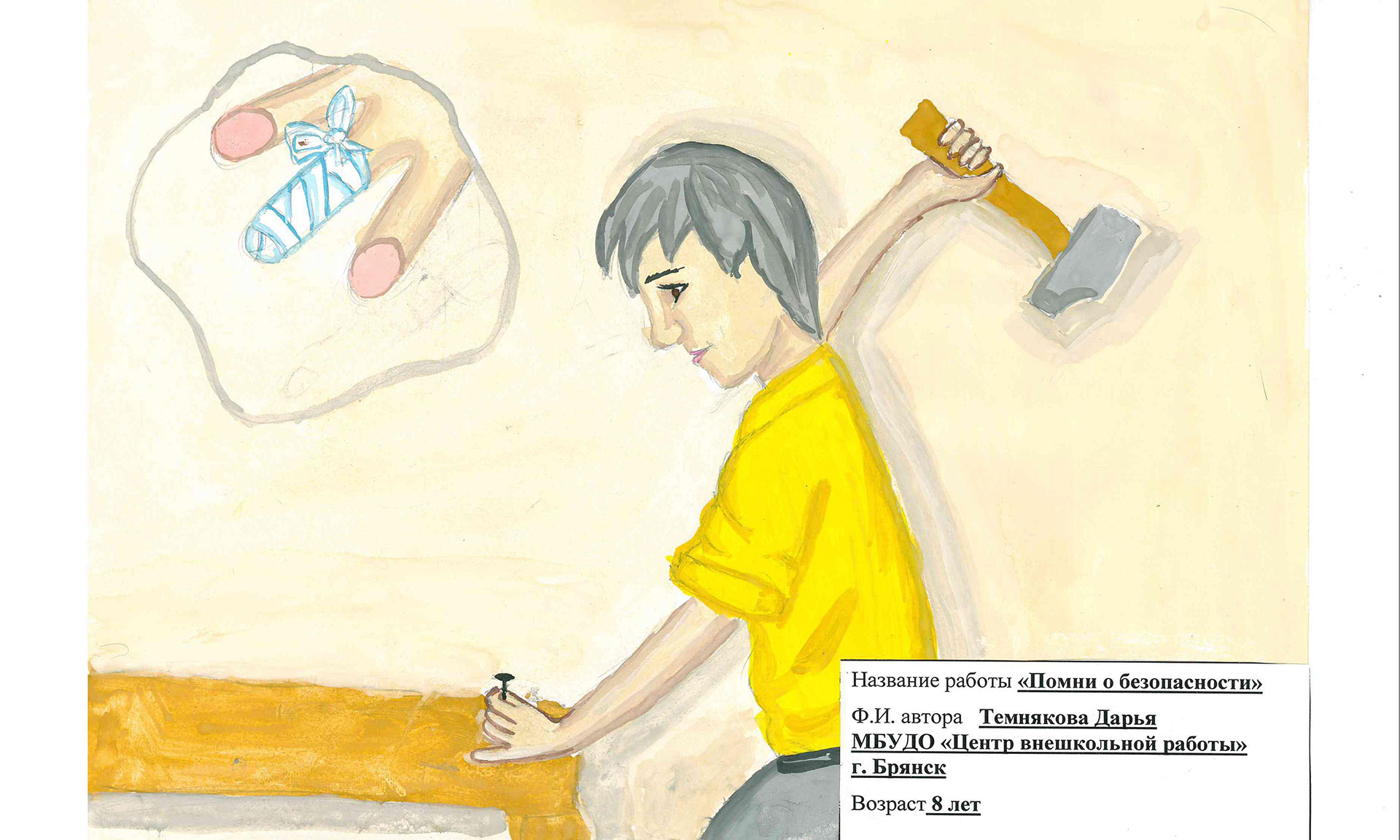 - конкурсная работа «Помни о безопасности» Дарьи Темняковой, 8 лет, МБУДО «Центр внешкольной работы» Брянска;