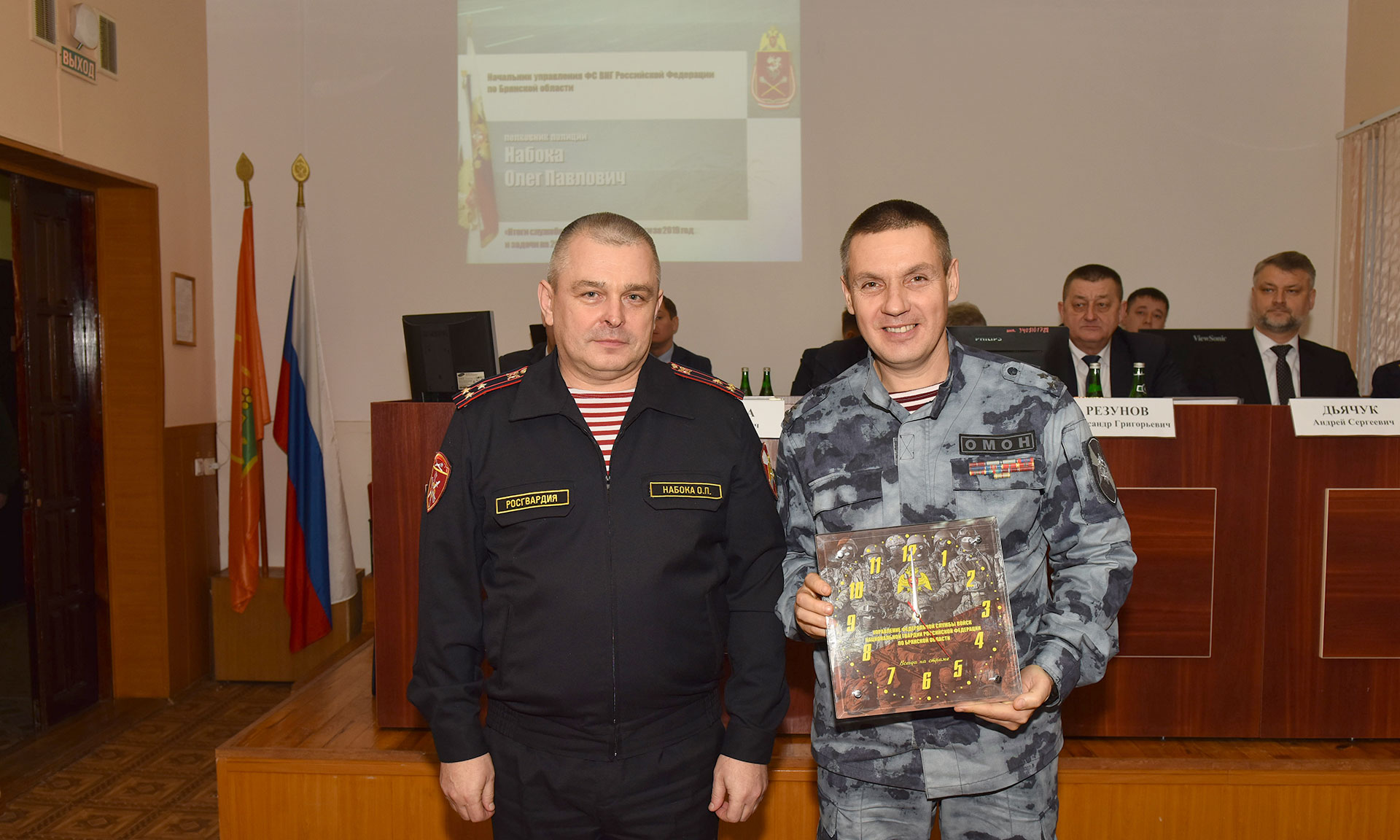 С заключительным словом выступил начальник Управления Росгвардии по Брянской области Олег Набока. Он подчеркнул, что деятельность Управления Росгвардии по Брянской области в 2019 году была направлена на обеспечение государственной и общественной безопасности, защите прав и свобод человека и гражданина. Основные задачи, стоящие перед Управлением в соответствии с Федеральным законом от 3 июля 2016 года 226 «О войсках национальной гвардии» выполнены в полном объеме. За 2019 год в рамках участия в охране общественного порядка и общественной безопасности подразделениями Управления выполнено более 8200 задач боевой службы.
