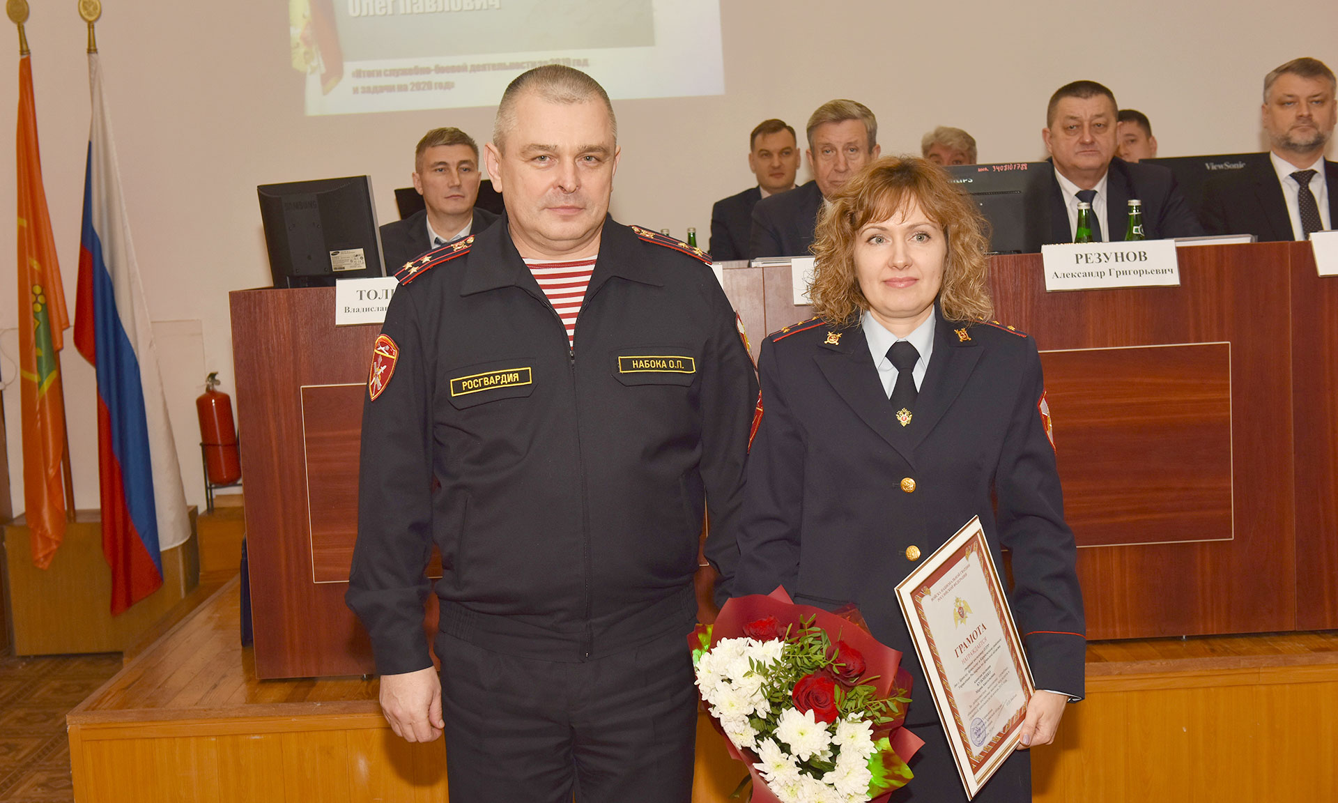 — Уважаемые товарищи! Сегодня будут подведены итоги работы Управления Росгвардии по Брянской области за 2019 год. Он был насыщен масштабными мероприятиями. И в том, что был обеспечен правопорядок и в целом стабильность в регионе, большая заслуга всех правоохранительных органов, в том числе вашего Управления под руководством Олега Павловича Набока. Губернатор Брянской области Александр Васильевич Богомаз неоднократно подчеркивал важность эффективного взаимодействия органов власти с Управлением Росгвардии, потому что одной из первостепенных задач для Правительства области является защита прав граждан.