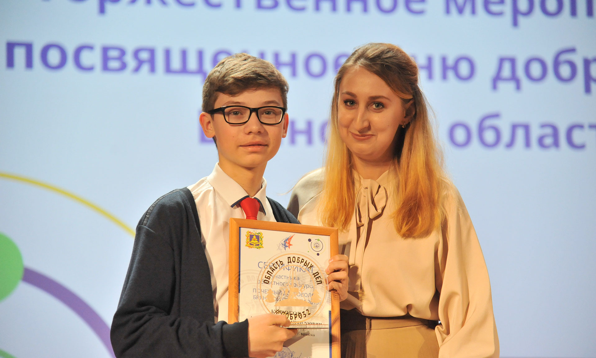 Полуфиналистов и финалиста федерального конкурса «Доброволец России-2019» наградили «Лучший доброволец России-2018 года», руководитель проекта «Здоровое село» и «Добро в село» Антон Коротченко и руководитель центра по развитию добровольческого движения и общественных инициатив Брянской области Юлия Устинова. Полуфиналистами конкурса стали: благотворительный фонд помощи детям с онкогематологическими и иными тяжелыми заболеваниями «Ванечка» (директор Фонда — Ирина Цыганкова), общественная организация «Белые Берега» (председатель — Василий Шаматрин), Ольга Соболева (проект «Ничто не забыто!», номинация «Уверенные в будущем»), Дмитрий Саркулов (проект «Центр содействия полиции», номинация «Смелые сердцем»).