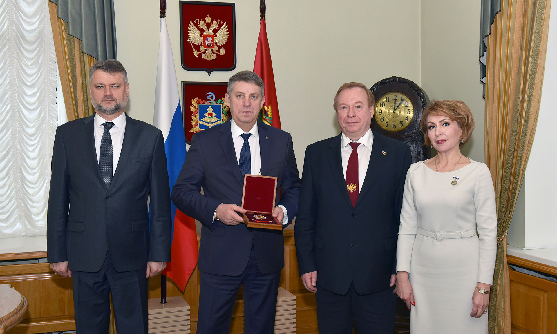 Николай Водянов вручил Губернатору Брянской области Александру Богомазу Благодарность председателя Профсоюза за большой вклад в развитие социального партнерства, плодотворное сотрудничество и содействие Общественному профессиональному союзу работников государственных учреждений и общественного обслуживание Российской Федерации по обеспечению соблюдения социально-трудовых прав и законных интересов членов Профсоюза.