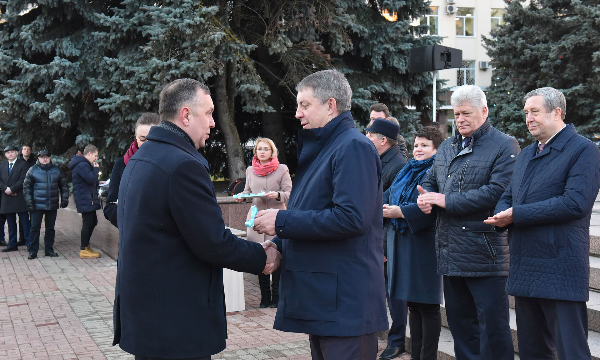 Специализированную коммунальную технику муниципальным образованиям Брянской области вручили Губернатор Брянской области — Александр Богомаз, председатель Брянской областной Думы Владимир Попков, депутат Государственной Думы ФС РФ Валентин Суббот.