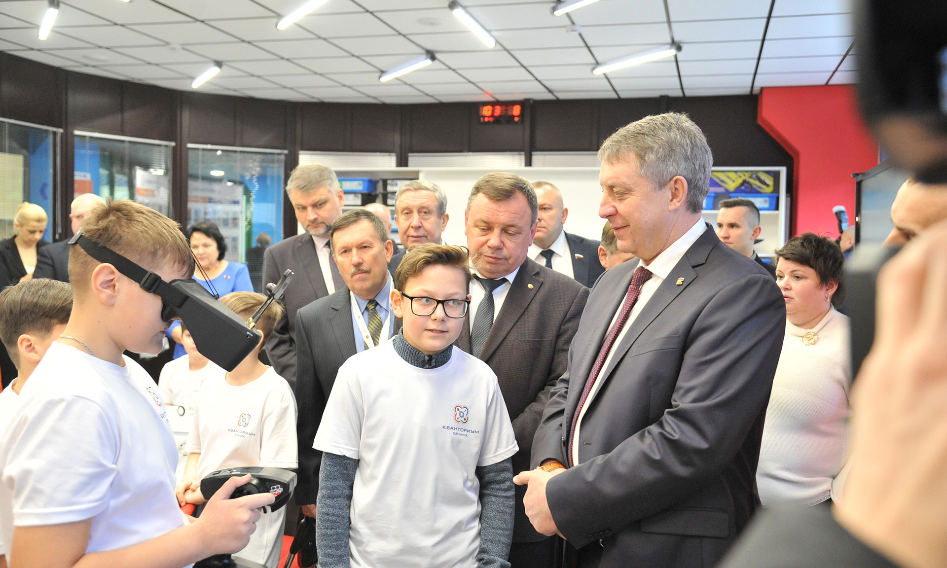 Мы открываем детский технопарк, обеспеченный самым современным оборудованием. Направления обучения ребят выбраны в соответствии с приоритетами экономического и технологического развития региона. Здесь наука идет рука об руку с производством. Я хочу выразить слова благодарности в адрес Правительства региона и департамента образования за слаженную работу по созданию «Кванториума». В следующем году планируется создать технопарк в Клинцах, в котором будут заниматься школьники из юго-западных районов.