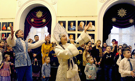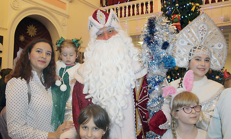 У большой новогодней елки ребята и их родители встретились с Дедом Морозом, Снегурочкой и другими сказочными персонажами, весело водили хороводы, танцевали и хлопали в ладоши, участвовали в веселых конкурсах, викторинах и играх. Примечательно, что многие из присутствующих пришли сюда семьями.