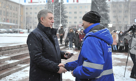 За эти 3 года мы приобрели 119 автомобилей за счет областного бюджета и 120 — за счет федерального бюджета. Эти автомобили приобретены за счет средств федерального бюджета. Выражаю огромную благодарность Председателю Правительства РФ Дмитрию Анатольевичу Медведеву и Министру здравоохранения за хорошее отношение к Брянской области. Мы один из субъектов, который получает большую поддержку от Правительства Российской Федерации по обеспечению здравоохранения машинами скорой помощи.