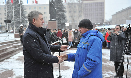 28 декабря на площади Ленина состоялось торжественное вручение ключей от 22 автомобилей скорой медицинской помощи учреждениям здравоохранения Брянской области.