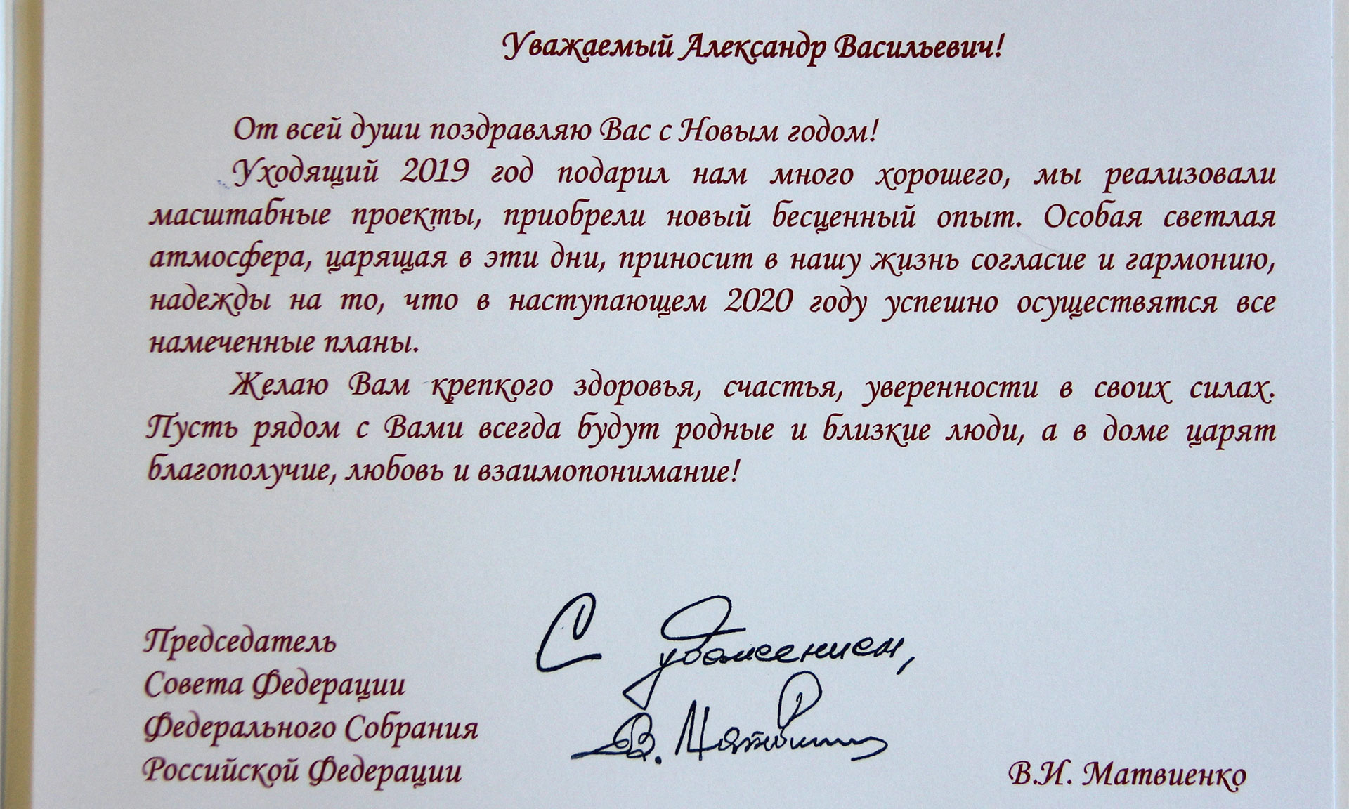 Губернатора Брянской области Александра Богомаза поздравила Председатель Совета Федерации Федерального Собрания Российской Федерации Валентина Матвиенко. В поздравлении говорится: