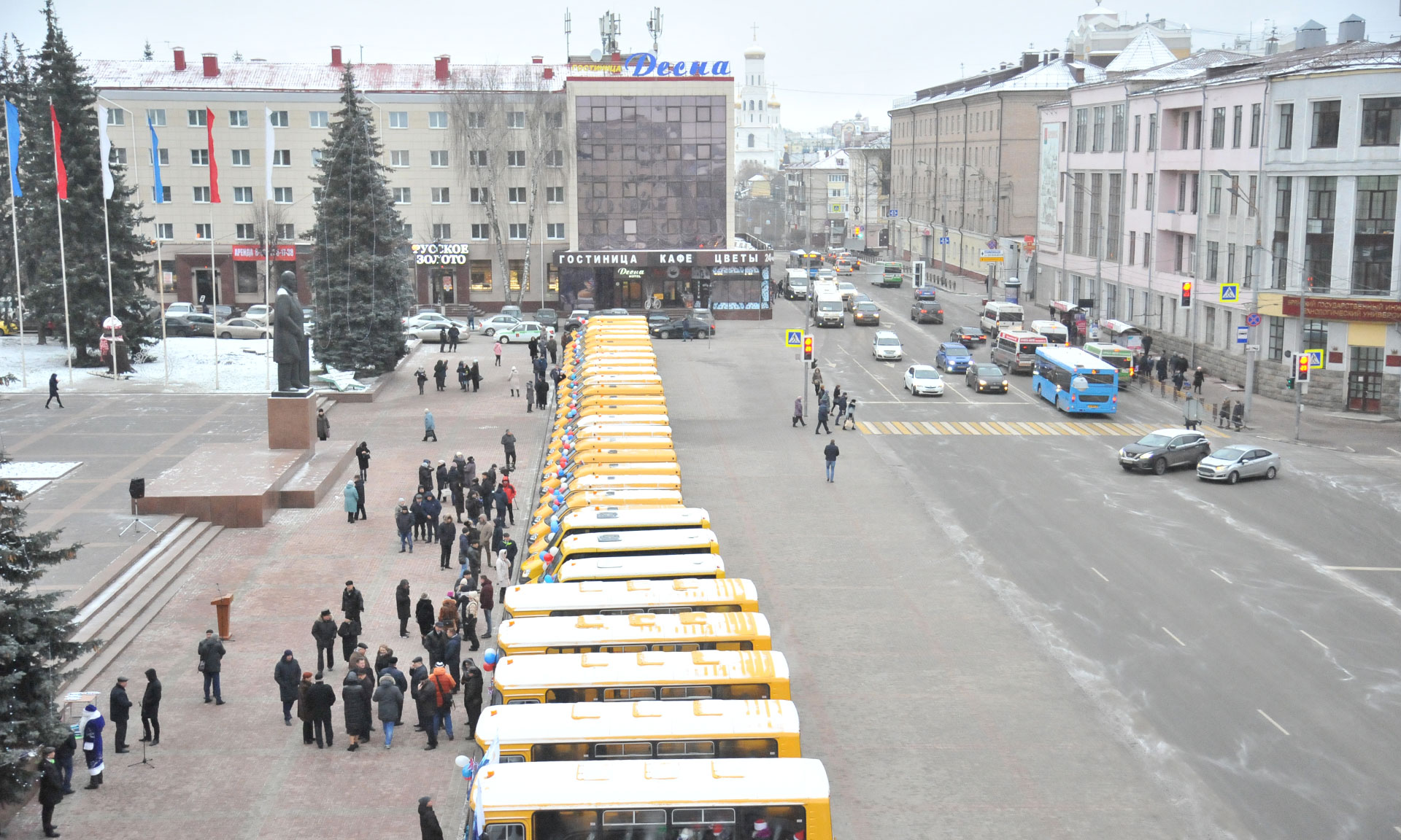 30 декабря на площади Ленина в Брянске состоялась торжественная церемония вручения ключей от 30 школьных автобусов образовательным учреждениям Брянской области.