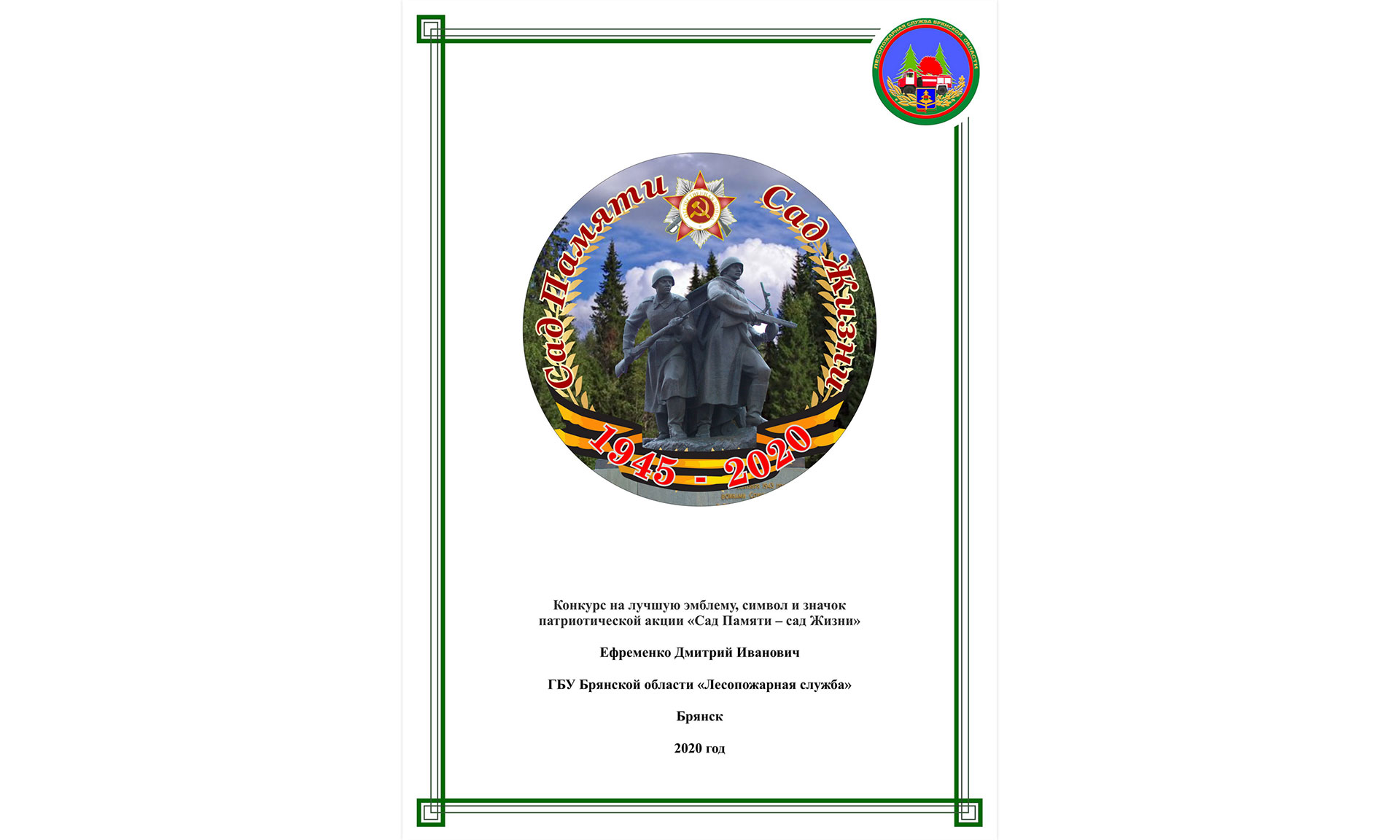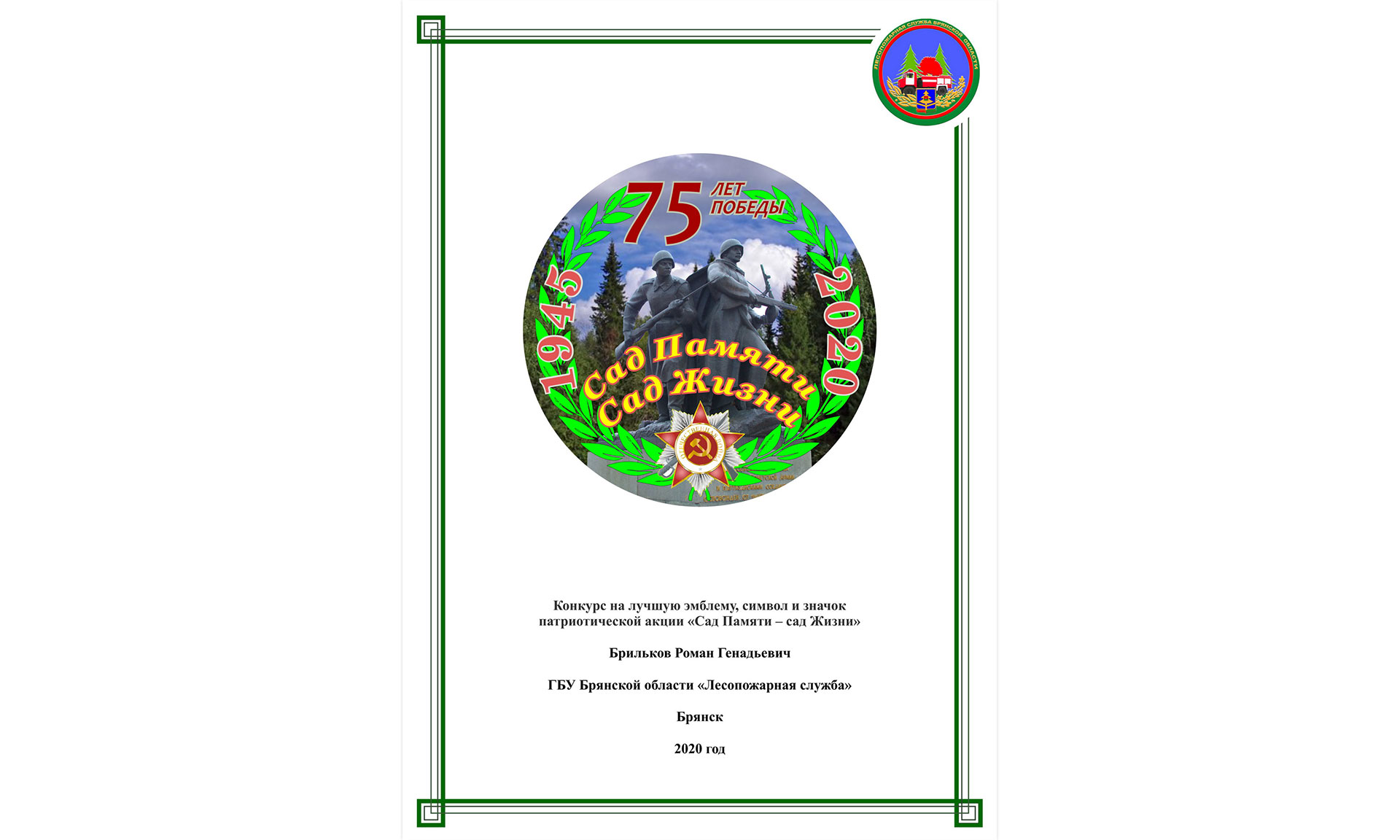 В начале 2020 года, объявленного годом памяти и славы в России, управлением лесами Брянской области дан старт конкурсу на лучшую эмблему, символ и значок патриотической акции «Сад памяти — сад жизни» среди работников подведомственных учреждений.