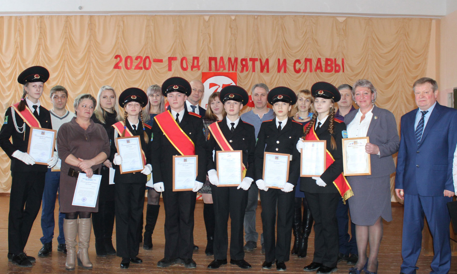 Ученики школы, объединённые в патриотический клуб «Пересвет», ярко проявили себя в ряде региональных и всероссийских конкурсов. Александр Коробко поздравил школьников и их наставников от имени Губернатора Брянской области и вручил благодарности за достижения в военно-патриотической работе директору школы Людмиле Клишиной, руководителю клуба «Пересвет» Петру Сырбу, а также юным патриотам клуба «Пересвет» и их родителям.