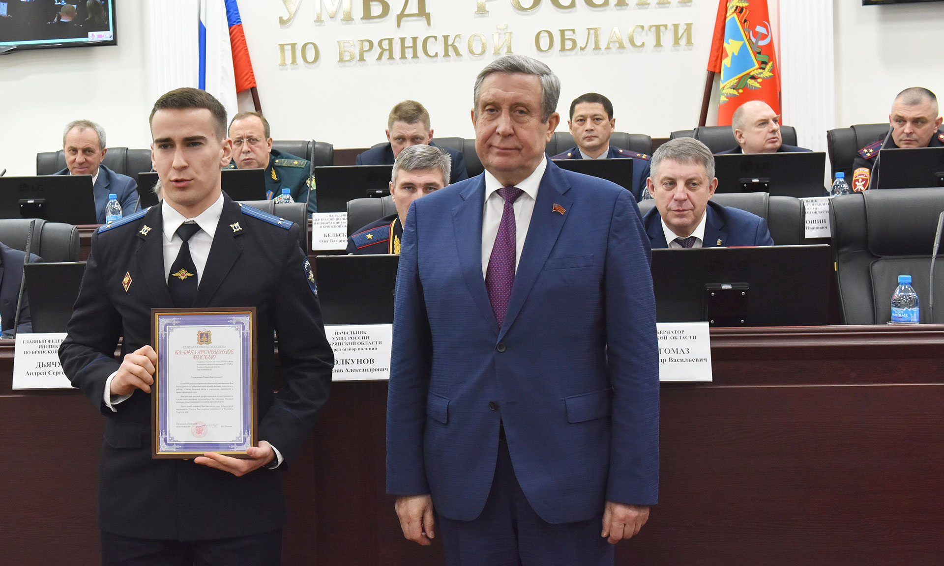 Начальник УМВД выразил признательность Губернатору Брянской области Александру Богомазу, председателю Брянской областной Думы Владимиру Попкову, главному федеральному инспектору по Брянской области Андрею Дьячуку, прокурору области Александру Войтовичу, а также всему личному составу прокуратуры, председателю областного суда Евгению Быкову и всему судейскому корпусу за постоянную поддержку и внимательное отношение к вопросам обеспечения правопорядка в регионе.