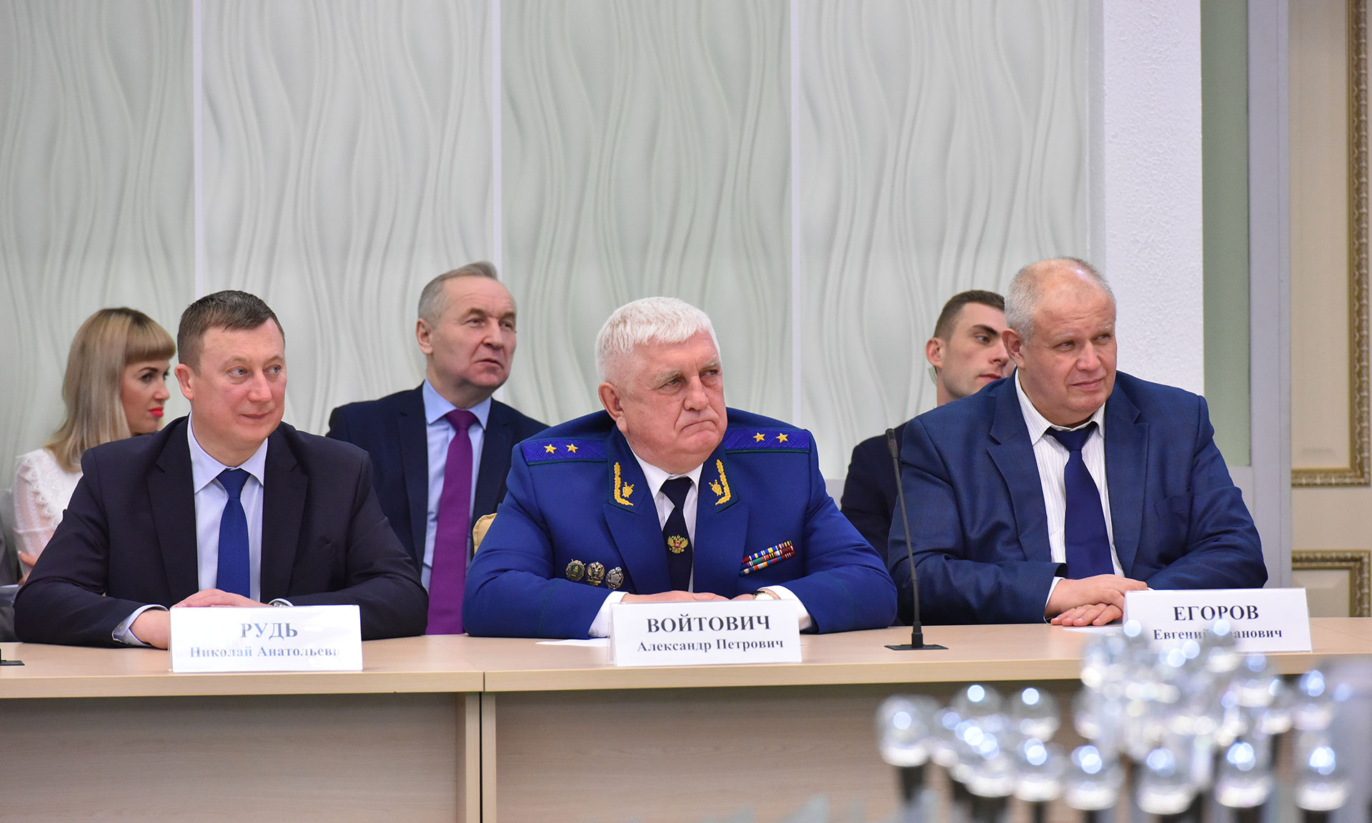 В совещании приняли участие Губернатор Брянской области Александр Богомаз, председатель Брянской областной Думы Владимир Попков, главный федеральный инспектор по Брянской области Андрей Дьячук, первый заместитель председателя Комитета Совета Федерации по экономической политике Сергей Калашников, член Совета Федерации Федерального Собрания Российской Федерации Галина Солодун, Герой Социалистического Труда, доверенное лицо Президента Российской Федерации, Почетный гражданин Брянской области, генеральный директор ООО «Красный Октябрь» Георгий Лобус, Герой Российской Федерации, председатель комитета Брянской областной Думы по молодежной политике, физической культуре и спорту, член президиума регионального отделения Всероссийского детско-юношеского военно-патриотического общественного движения «ЮНАРМИЯ» Брянской области Александр Постоялко, председатель Брянского областного суда Евгений Быков, председатель Арбитражного суда Брянской области Евгений Егоров, прокурор Брянской области Александр Войтович, начальник управления ФСБ России по Брянской области Николай Рудь, начальник управления МВД России по Брянской области Владислав Толкунов, исполняющий обязанности начальника главного управления МЧС России по Брянской области Алексей Анисенков, начальник управления Федеральной службы войск национальной гвардии Российской Федерации по Брянской области Олег Набока, руководитель следственного управления Следственного комитета Российской Федерации по Брянской области Максим Лукичев, начальник пограничного управления ФСБ России по Брянской области Сергей Митюшин, исполняющий обязанности начальника Центра специальной связи и информации Федеральной службы охраны Российской Федерации в Брянской области Сергей Жензеров, руководитель управления Федеральной службы судебных приставов по Брянской области — главный судебный пристав Брянской области Елена Бывшева, начальник управления ФСИН России по Брянской области Леонид Сагалаков, начальник Брянской таможни Игорь Ерошин, исполняющая обязанности руководителя управления ФНС России по Брянской области Алина Коваленко, военный комиссар Брянской области Андрей Соломенцев, вице-губернатор Брянской области Александр Резунов, заместители Губернатора Брянской области, руководители исполнительных органов власти Брянской области, а также ведущих предприятий региона, представители общественности.