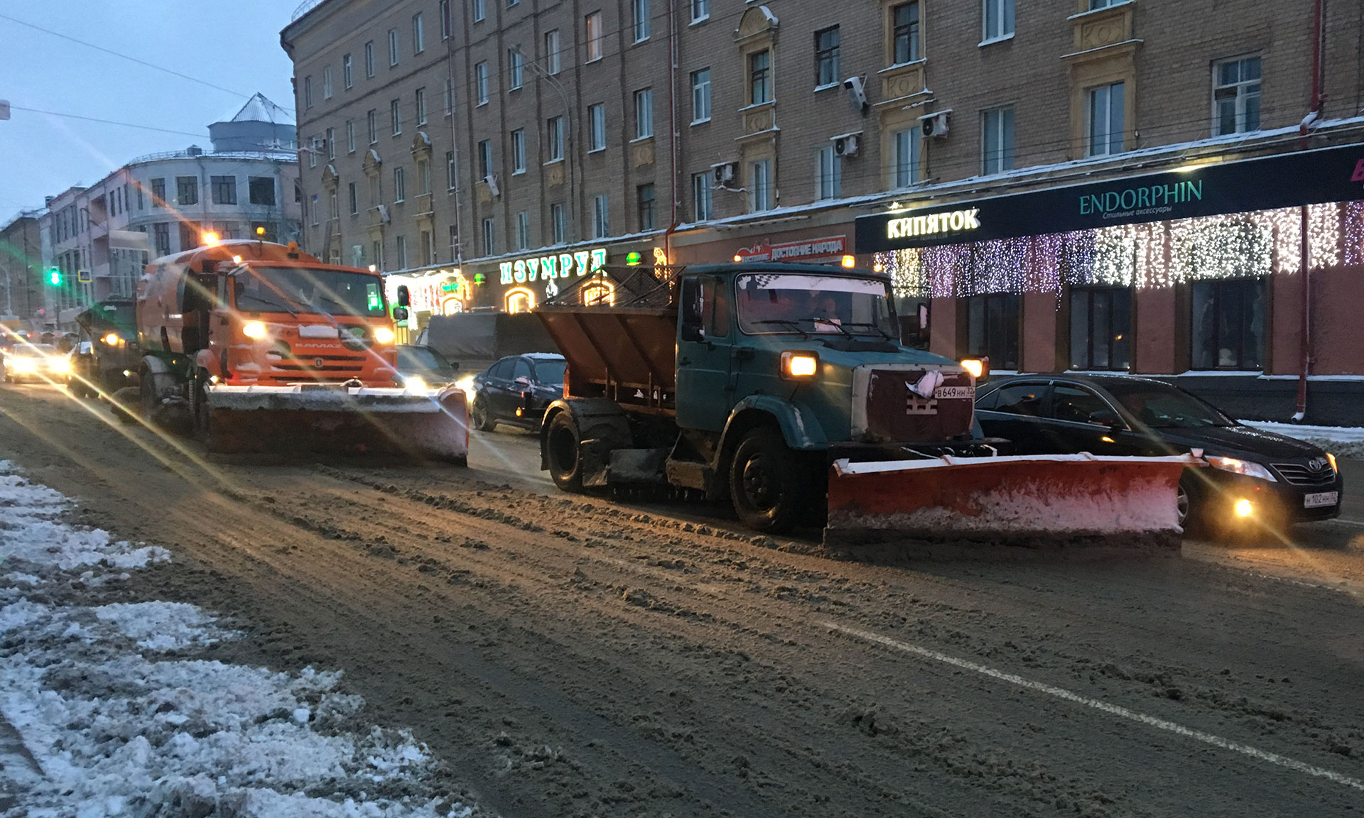 В связи с продолжительностью снегопада, за ночь бригады дорожников производили обработку дорог реагентом несколько раз — максимально плотная посыпка песко-соляной смесью осуществлялась с 05:00, когда снегопад значительно усилился. Напомним, реагент предотвращает образование ледяного наката на проезжей части.