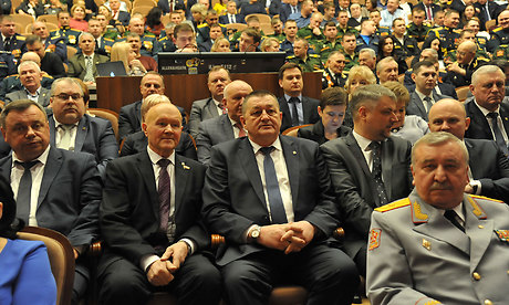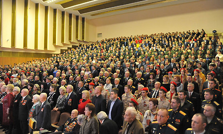 — Уважаемые командиры воинских частей и подразделений, воины Брянского территориального гарнизона, ветераны войны и Вооруженных Сил! Участники торжественного собрания! По традиции мы собрались сегодня в этом зале, чтобы поздравить защитников Отечества! Этот всенародный праздник символизирует силу и мужество, честь и доблесть разных поколений российского воинства, славу нашего оружия, стойкость и патриотизм великого народа России. Ни одной стране в мире не выпало столько суровых испытаний, сколько нашей Родине, и ни один народ не одержал столько великих и судьбоносных военных побед в истории мировых сражений.