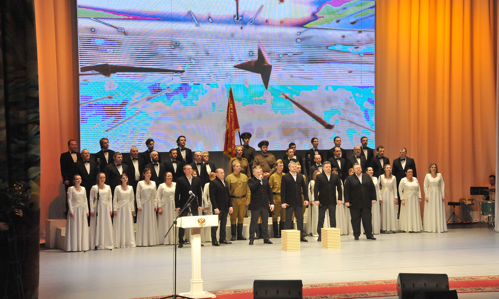 Продолжилось торжественное собрание праздничным концертом с участием лучших творческих коллективов Брянской области и солиста Брянской областной филармонии Александра Добронравова.
