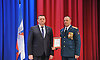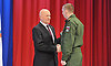 Уважаемые участники торжественного собрания! Я от всей души поздравляю вас, всех ветеранов, личный состав, гражданский персонал Вооруженных Сил — кто служил, и кто сегодня служит в армии и на флоте, — с наступающим Днем защитника Отечества! Крепкого здоровья вам и вашим близким, благополучия, успехов во всех делах! С праздником!