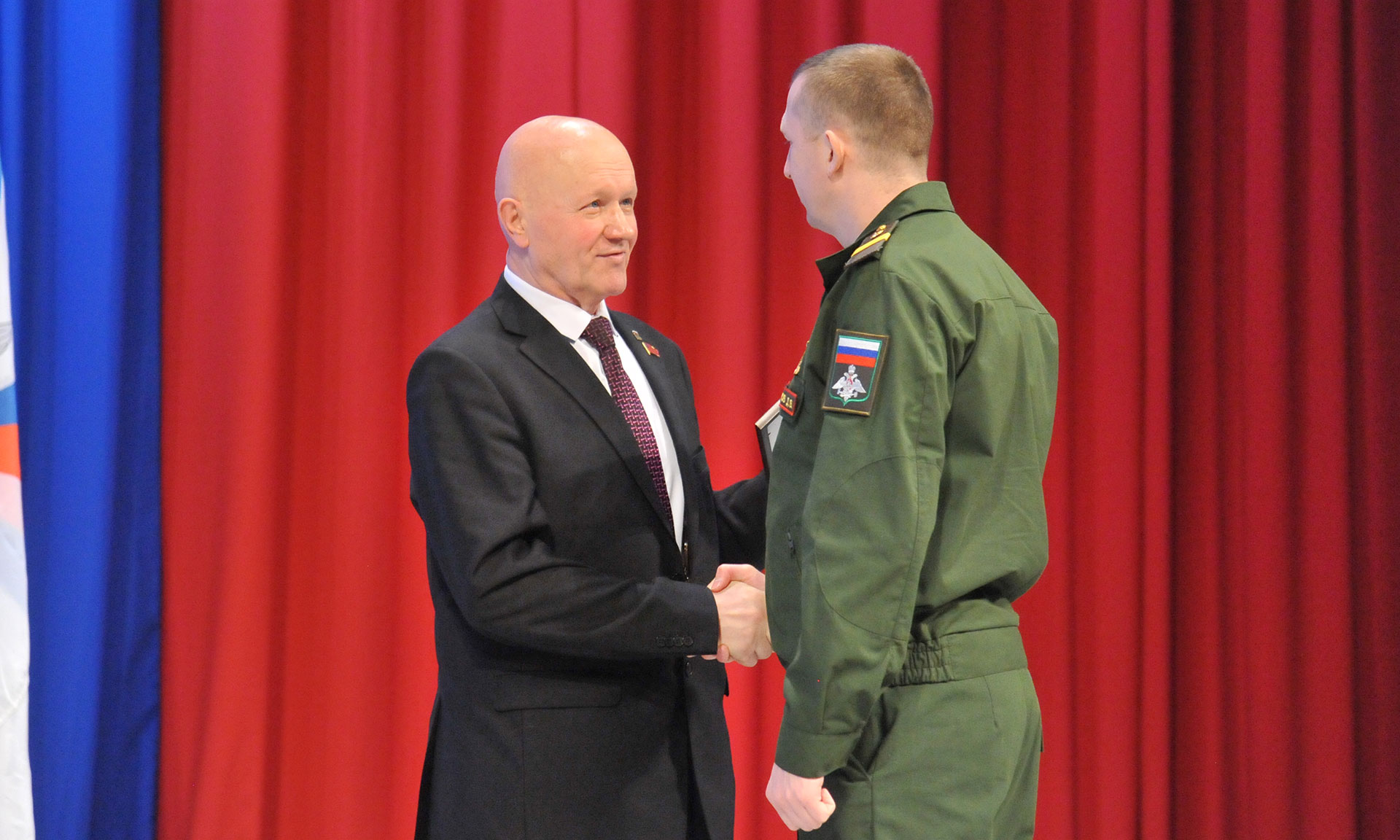 Военный комиссар Брянской области Андрей Соломенцев обратился к участникам торжественного собрания: