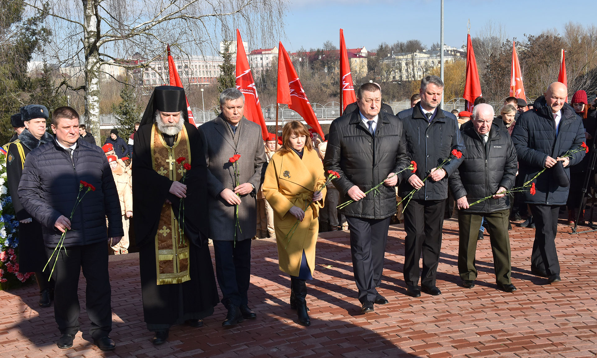 В знак памяти и славы павшим воинам корзину цветов и цветы к памятнику «Круговая оборона» возложили исполняющий обязанности Губернатора Брянской области Александр Резунов, исполняющий обязанности председателя Брянской областной Думы Владимир Пронин, главный федеральный инспектор по Брянской области Андрей Дьячук, член Совета Федерации Федерального Собрания Российской Федерации Галина Солодун, первый заместитель председателя Комитета Государственной Думы по экологии и охране окружающей среды Николай Валуев, Герой Советского Союза Иван Кашин, Герой Российской Федерации Александр Постоялко, член генерального совета Деловой России, сопредседатель Московского регионального отделения Деловой России Андрей Павлов, председатель Ассоциации военно-патриотических клубов ДОСААФ России Андрей Тимофеев, куратор Всероссийского проекта по установке бюстов бойцам 6-й роты, 20-летию подвига в Аргунском ущелье Елена Беликова, заместитель директора департамента организационно-уставной деятельности ДОСААФ России Виталий Чухиль, заведующий отделом по взаимодействию церкви и общества Брянской Епархии, иеромонах Корнилий (Недбаевский).