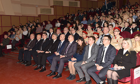 — Дорогие друзья, уважаемые родители, юнармейцы! В этом году мы отмечаем великую дату — 75-летие великой Победы нашего народа над фашизмом. XX век породил много несчастий для человечества. С фашизмом мы справились, но голову поднял международный терроризм. Он не имеет прописки, и наша страна точно так же в свое время, как и сейчас держит круговую оборону в Сирии, а тогда это была оборона в Афганистане, в Чечне. К сожалению, война вырывает самых лучших. Самые лучшие учатся на примере старших поколений, начиная от Александра Невского.