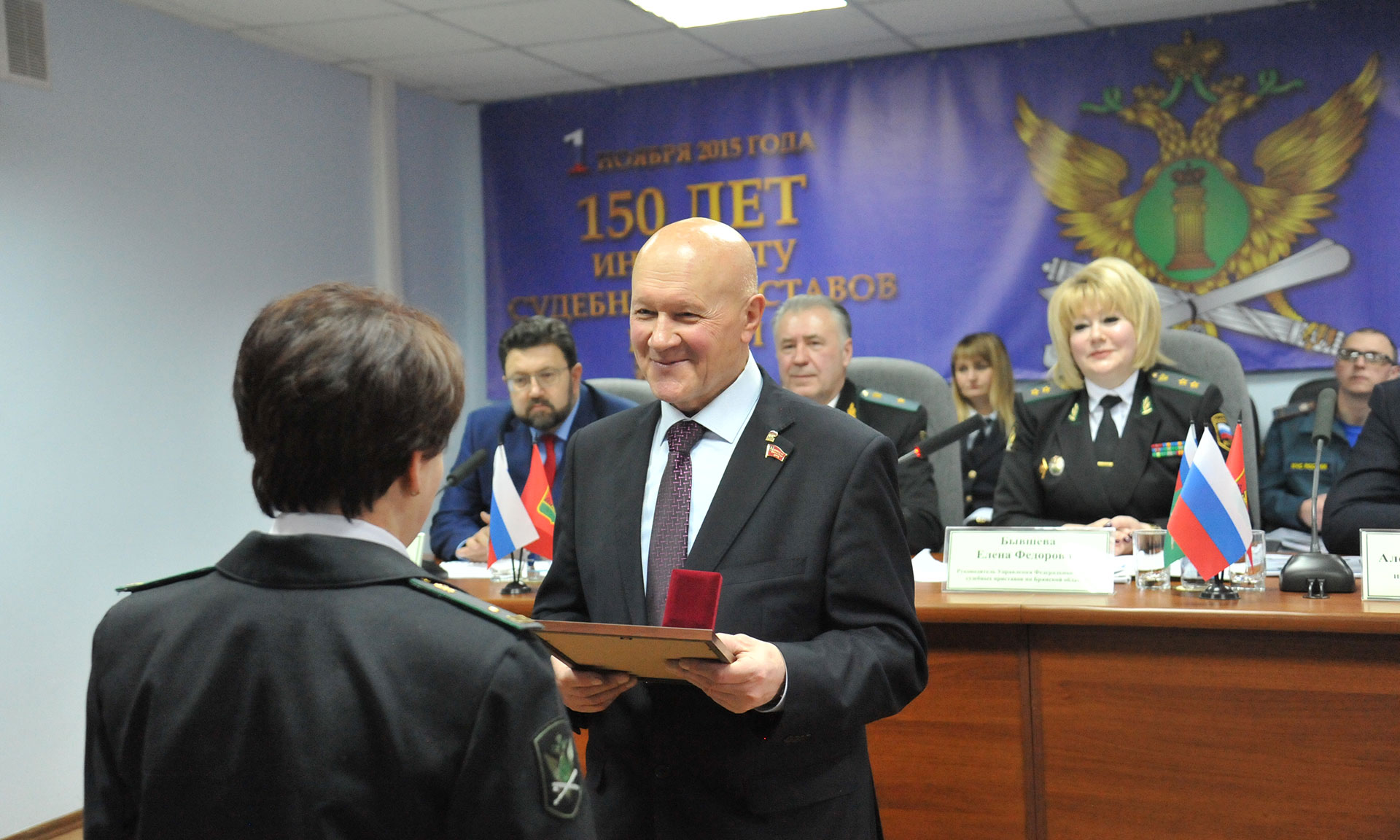 В мероприятии приняли участие советник директора Федеральной службы судебных приставов России Анатолий Кравченко, заместитель председателя Брянской областной Думы Владимир Пронин, федеральный инспектор по Брянской области Михаил Калашников, председатель Брянского областного суда Евгений Быков, руководители силовых структур, федеральных служб и ведомств Брянской области.