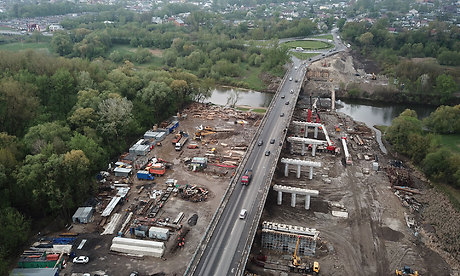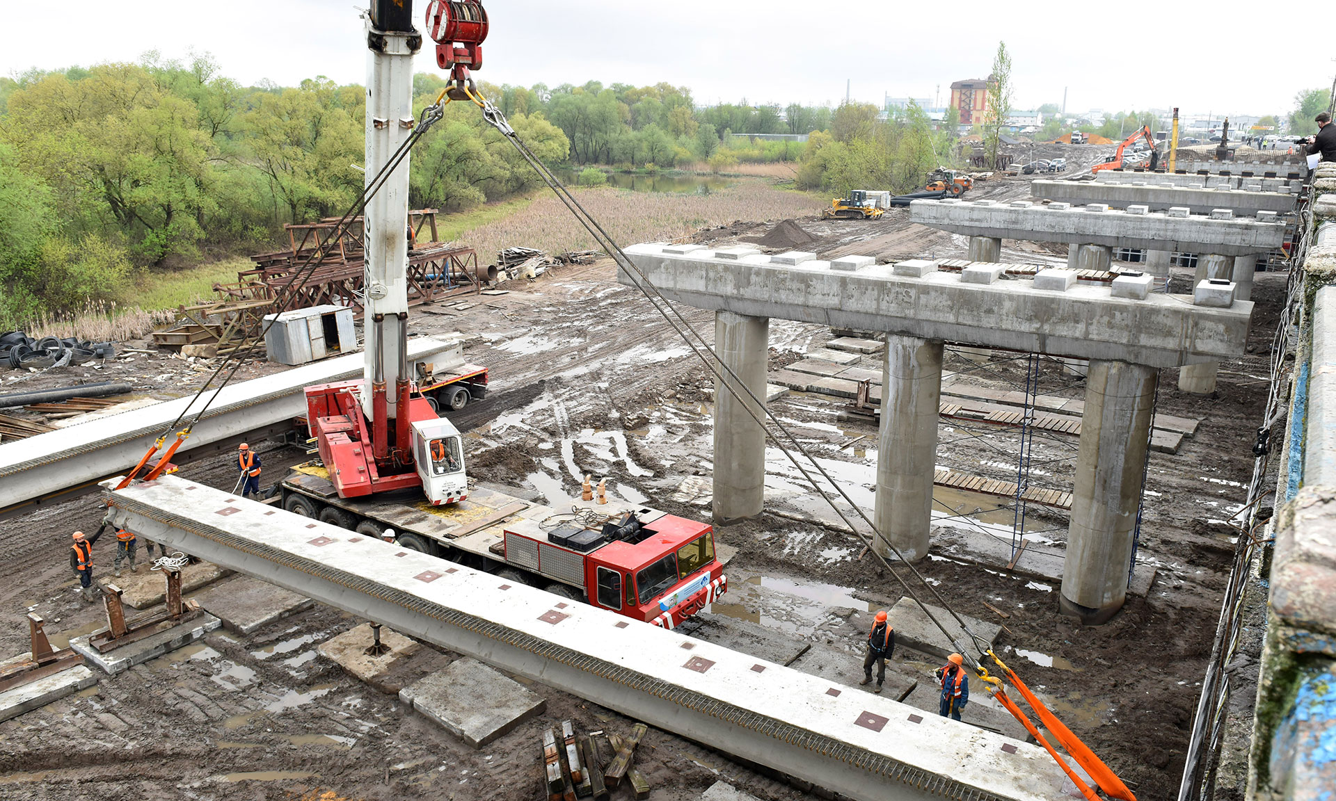 Накануне первые 2 балки прибыли в Брянск из подмосковного Дмитрова, где их по спецзаказу изготавливает завод мостовых железобетонных конструкций. За процессом укладки балок сегодня наблюдал Губернатор Брянской области Александр Богомаз. Здесь же, на объекте он провел короткое совещание, в котором приняли участие глава Брянской городской администрации Александр Макаров и генеральный директор подрядной организации ООО «Мостремстрой» Анатолий Дидковский.