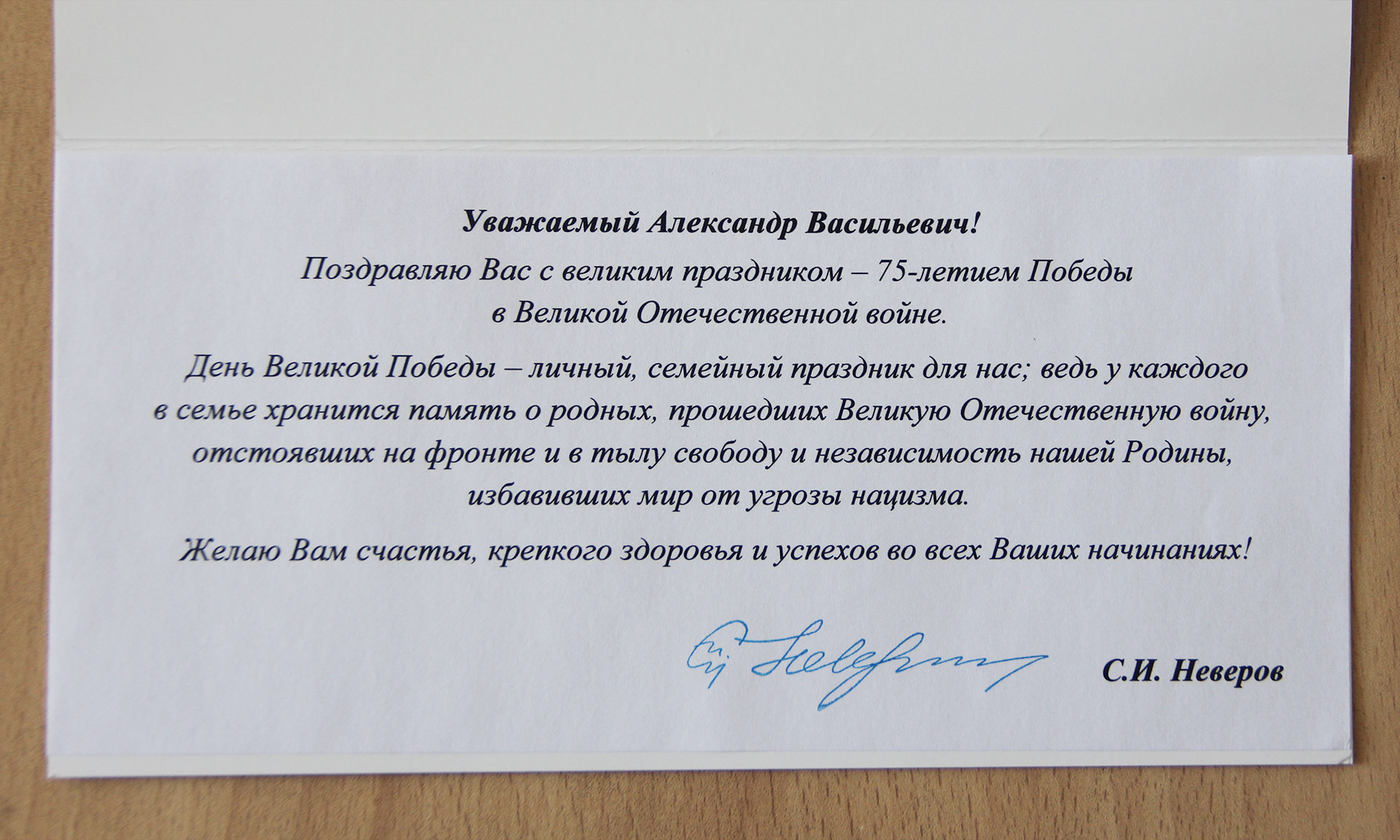 Поздравляю Вас с великим праздником — 75-летием Победы в Великой Отечественной войне.