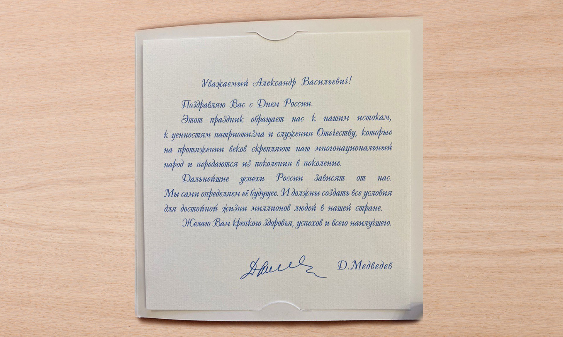 В адрес Губернатора Брянской области Александра Богомаза поступила поздравительная открытка от председателя Всероссийской политической партии «Единая Россия», заместителя председателя Совета Безопасности Российской Федерации Дмитрия Медведева. В ней, в частности, говорится: