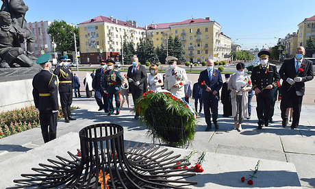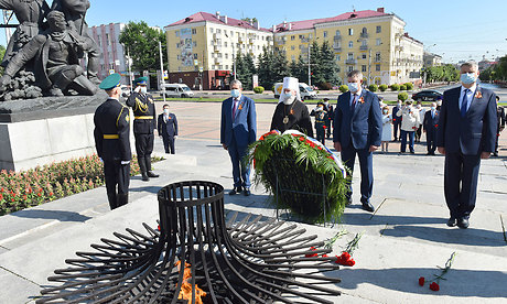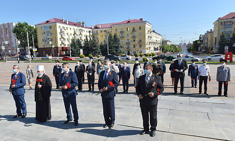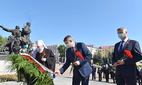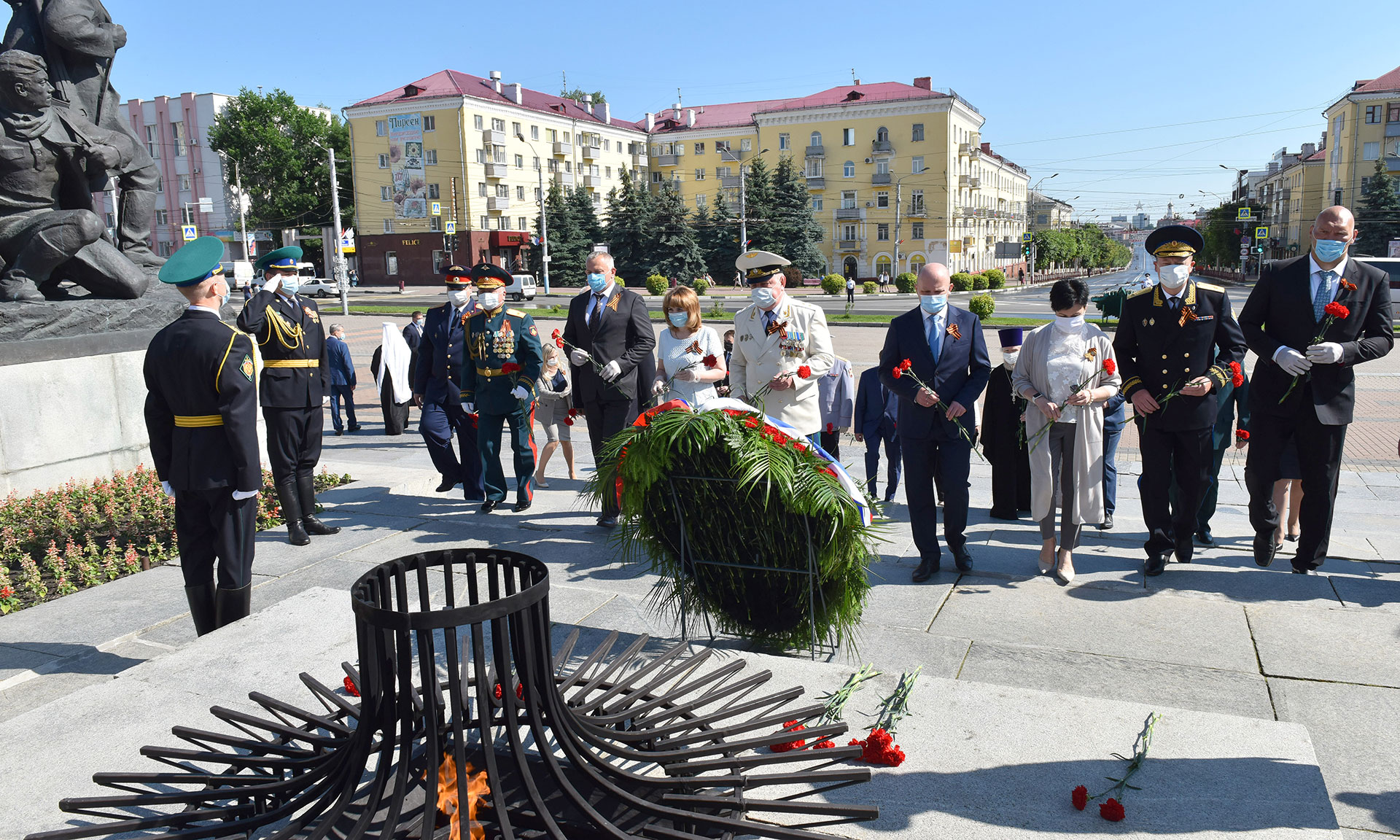Перед его началом руководители Брянской области и почетные гости, отдавая дань глубокого уважения великому подвигу, героизму и самоотверженности ветеранов войны, приняли участие в торжественной церемония возложения цветов к Вечному огню у Памятника Воинам и Партизанам на Площади Партизан. Память защитников Родины почтили: Губернатор Брянской области Александр Богомаз, председатель Брянской областной Думы Владимир Попков, главный федеральный инспектор по Брянской области Андрей Дьячук, Герой Советского Союза Иван Андреевич Кашин, митрополит Брянский и Севский Александр, член Совета Федерации Федерального Собрания Российской Федерации Галина Солодун, первый заместитель председателя Комитета Государственной Думы по экологии и охране окружающей среды Государственной Думы Федерального Собрания Российской Федерации Николай Валуев, депутаты Государственной Думы Федерального Собрания Российской Федерации Валентин Суббот и Валентина Миронова, председатель Брянского областного суда Евгений Быков, председатель Арбитражного суда Евгений Егоров, прокурор Брянской области Александр Войтович, начальник управления ФСБ России по Брянской области Николай Рудь, начальник управления МВД России по Брянской области Владислав Толкунов, начальник главного управления МЧС России по Брянской области Вадим Уваркин, начальник управления Федеральной службы войск национальной гвардии Российской Федерации по Брянской области Олег Набока, руководитель следственного управления Следственного комитета Российской Федерации по Брянской области Максим Лукичев, начальник пограничного управления ФСБ России по Брянской области Сергей Митюшин, начальник Центра специальной связи и информации Федеральной службы охраны Российской Федерации в Брянской области Олег Бельский, руководитель управления Федеральной службы судебных приставов по Брянской области — главный судебный пристав Брянской области Елена Бывшева, врио начальника управления ФСИН России по Брянской области Евгений Фадеев, начальник Брянской таможни Игорь Ерошин, руководитель управления ФНС России по Брянской области Андрей Маркелов, военный комиссар Брянской области Андрей Соломенцев, заместители Губернатора, глава Брянской городской администрации Александр Макаров, глава города Брянска Марина Дбар, жители региона.