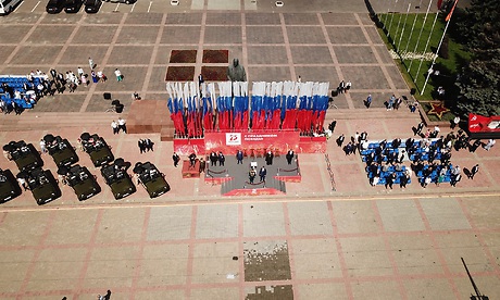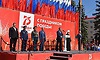 Под музыку песни композитора Александрова «Священная война» на площадь внесены два символа России: легендарное Знамя Победы и Государственный флаг Российской Федерации.