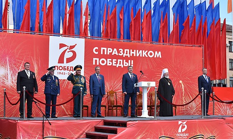 Под звуки Гимна Российской Федерации начался торжественный марш в честь 75-й годовщины Победы в Великой Отечественной войне 1941 — 1945 годов.