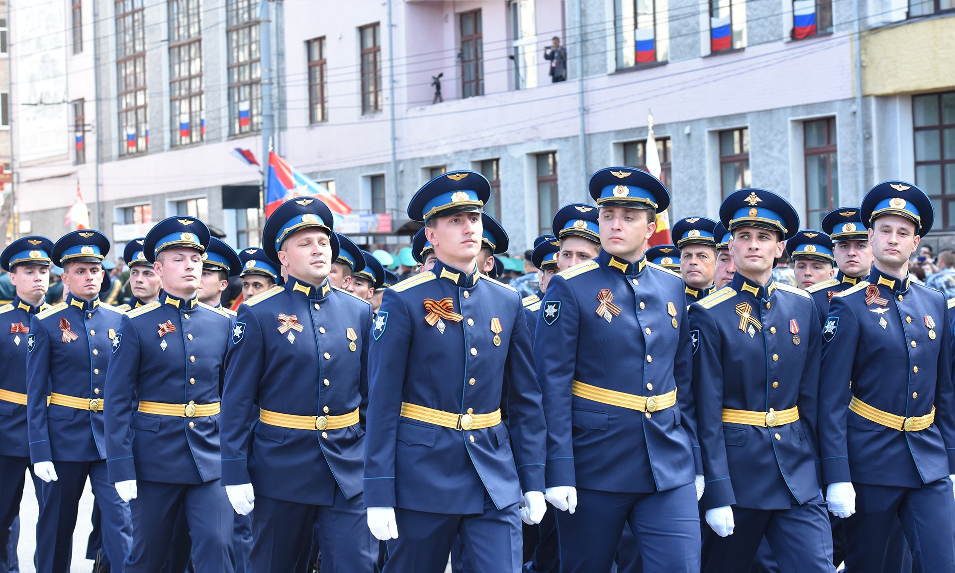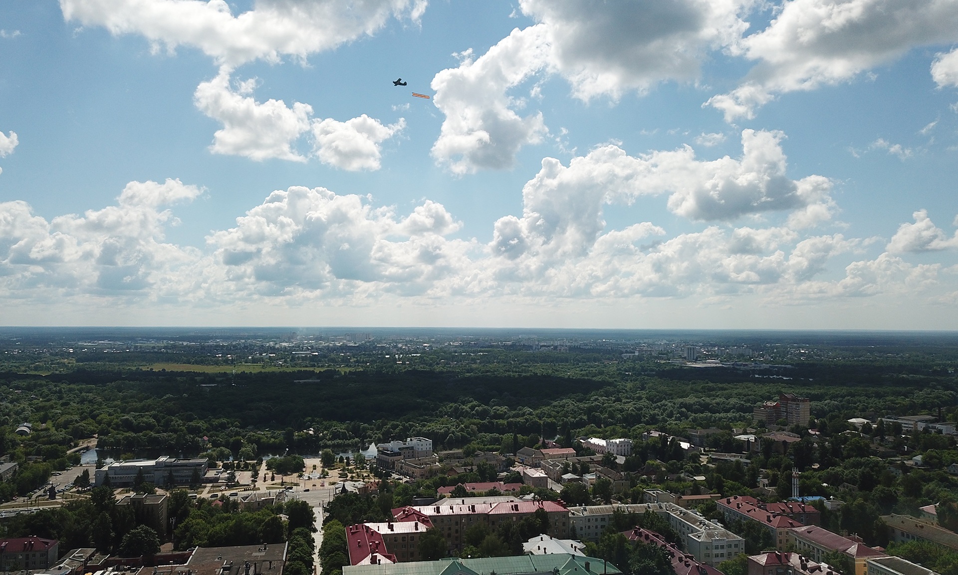 Участников и гостей торжественного марша приветствовали лётчики Брянского авиационно-спортивного клуба ДОСААФ России по Брянской области. В годы Великой Отечественной войны 24 воспитанника Брянского аэроклуба стали Героями Советского Союза, а Павел Михайлович Камозин этого звания удостоен дважды. В небе над площадью Ленина пролетела тройка учебно-спортивных самолётов.